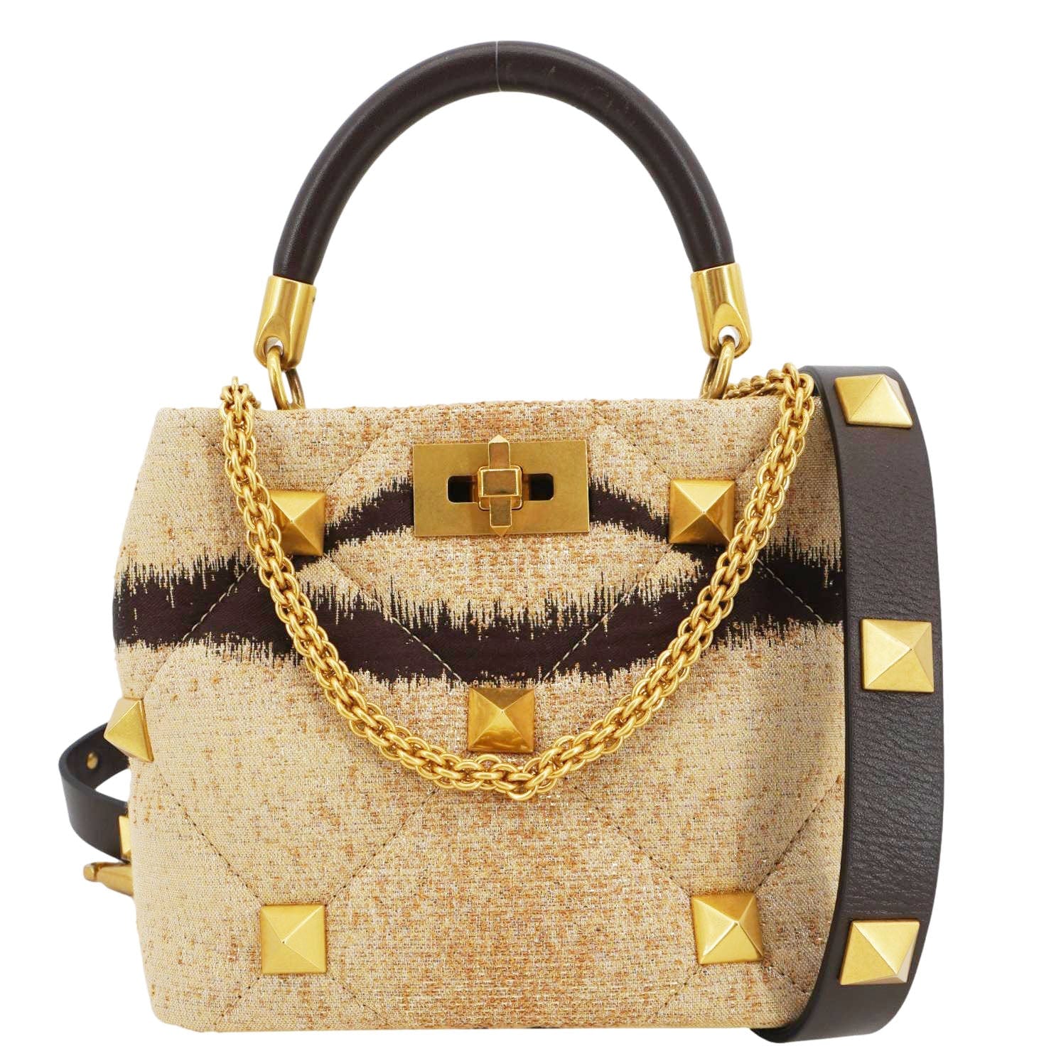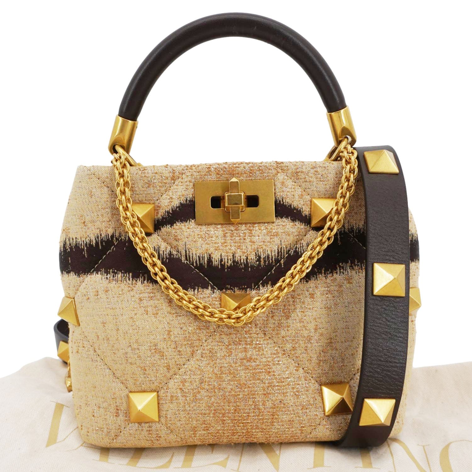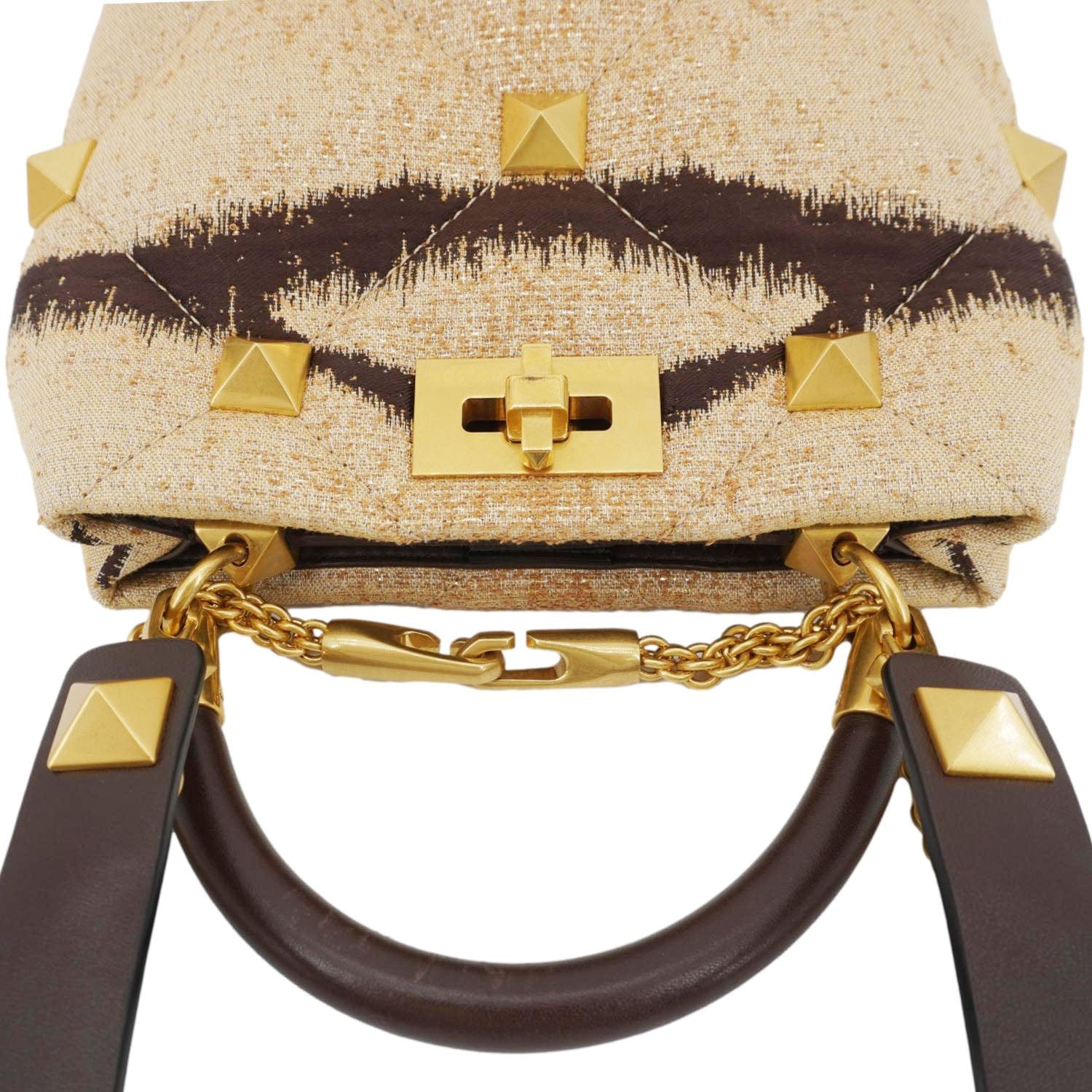 VALENTINO Roman Stud Vintage Tiger Print Top Handle Shoulder Bag Sand Gold