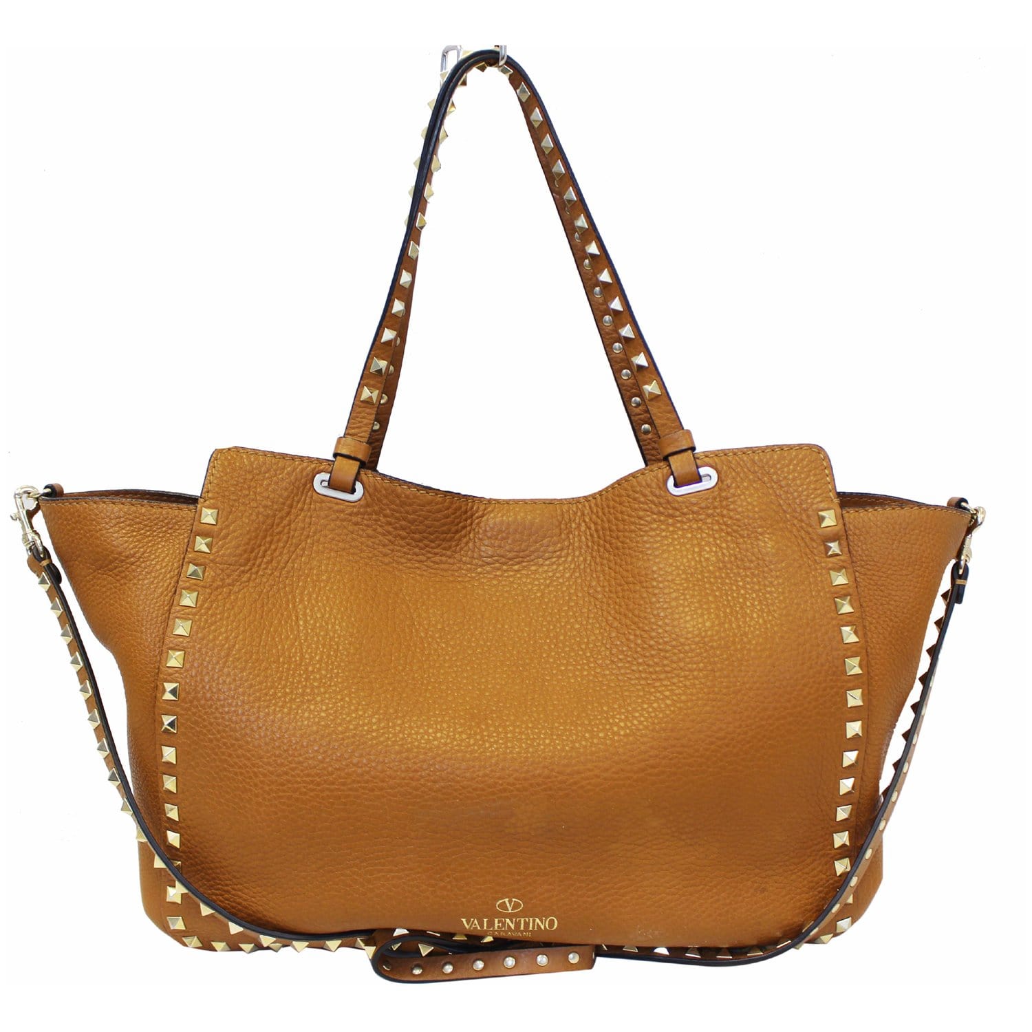 VALENTINO Rockstud Leather Medium Tote Shoulder Bag Camel Brown