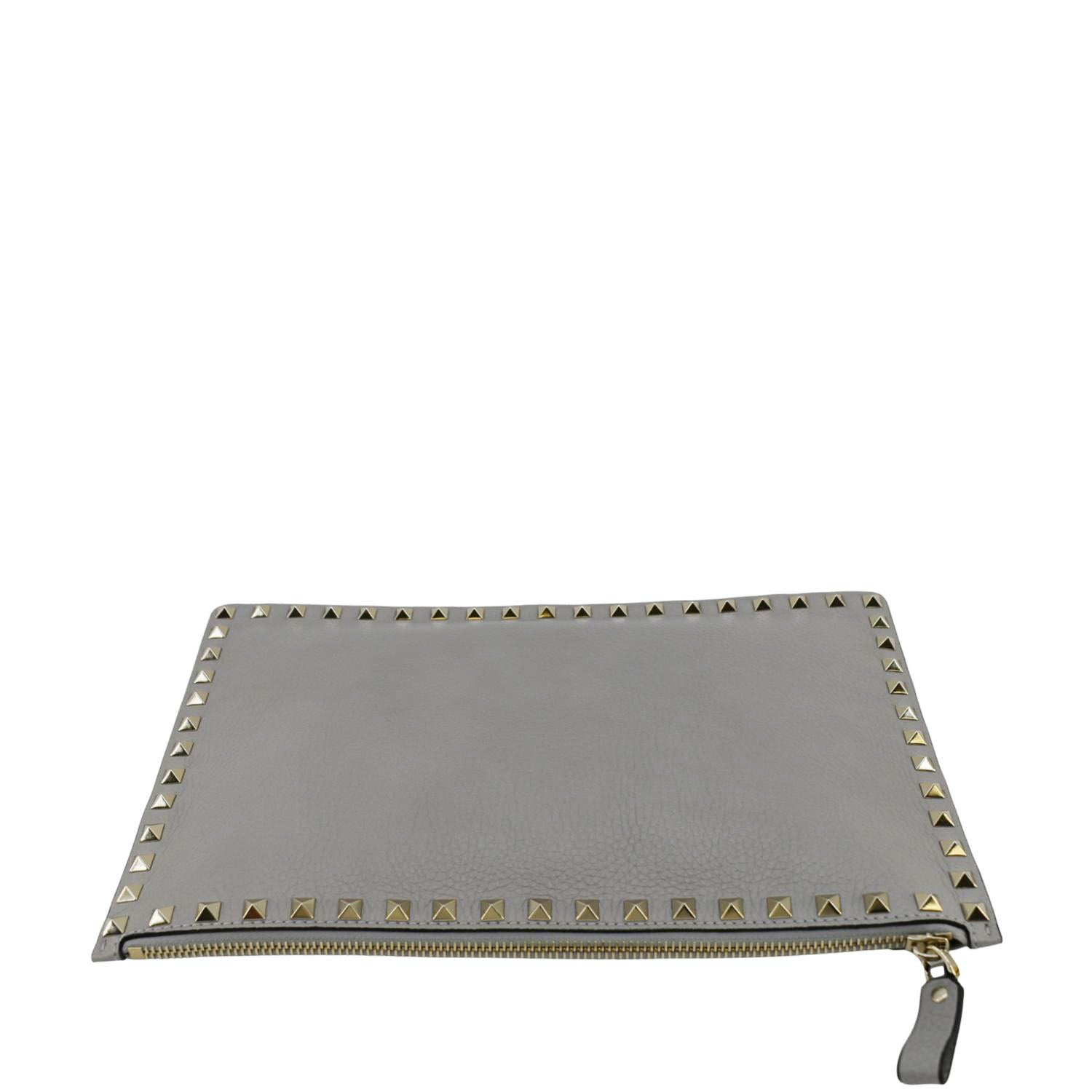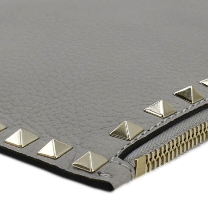 VALENTINO GARAVANI Rockstud Zip Clutch Leather Pouch Grey