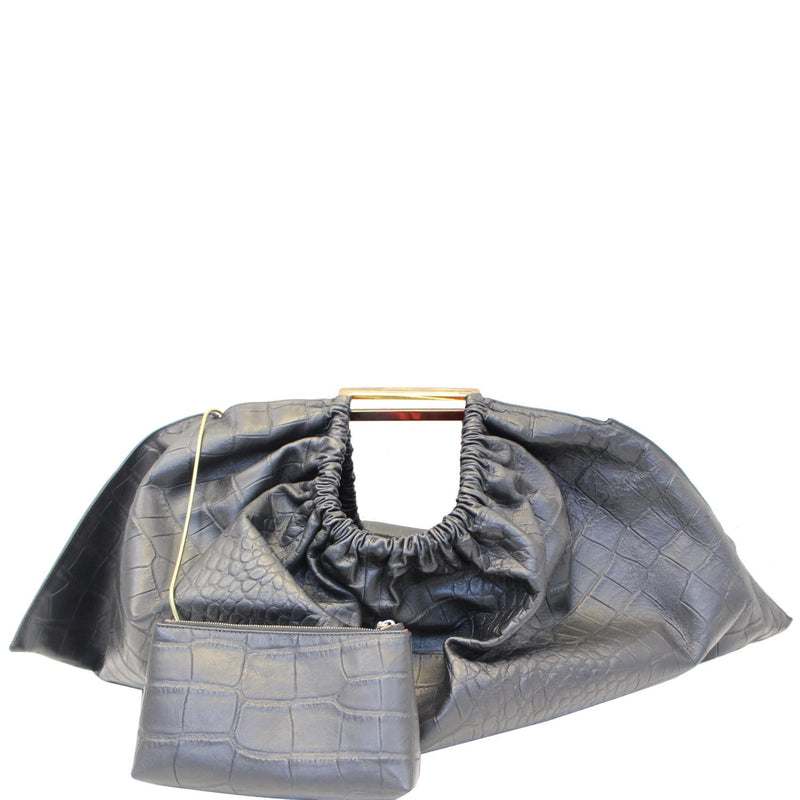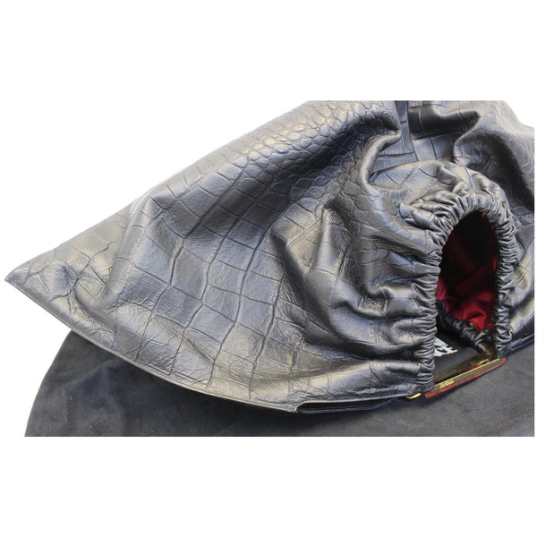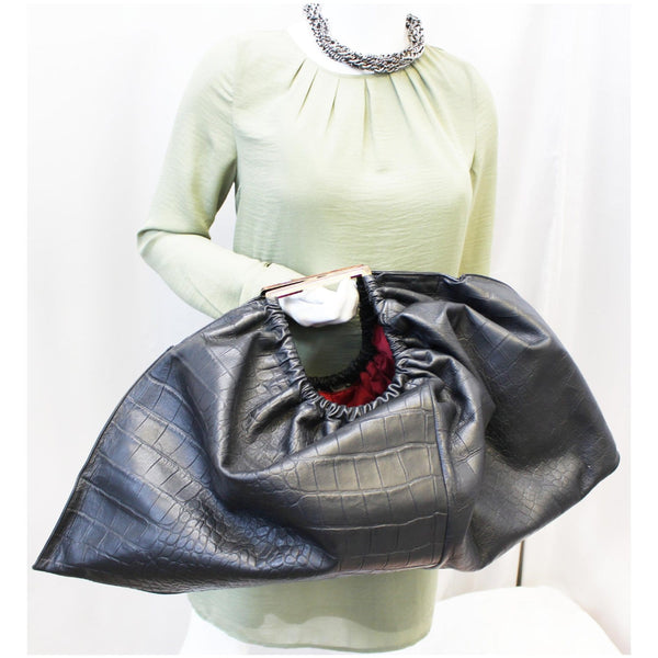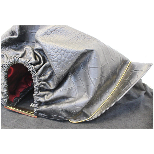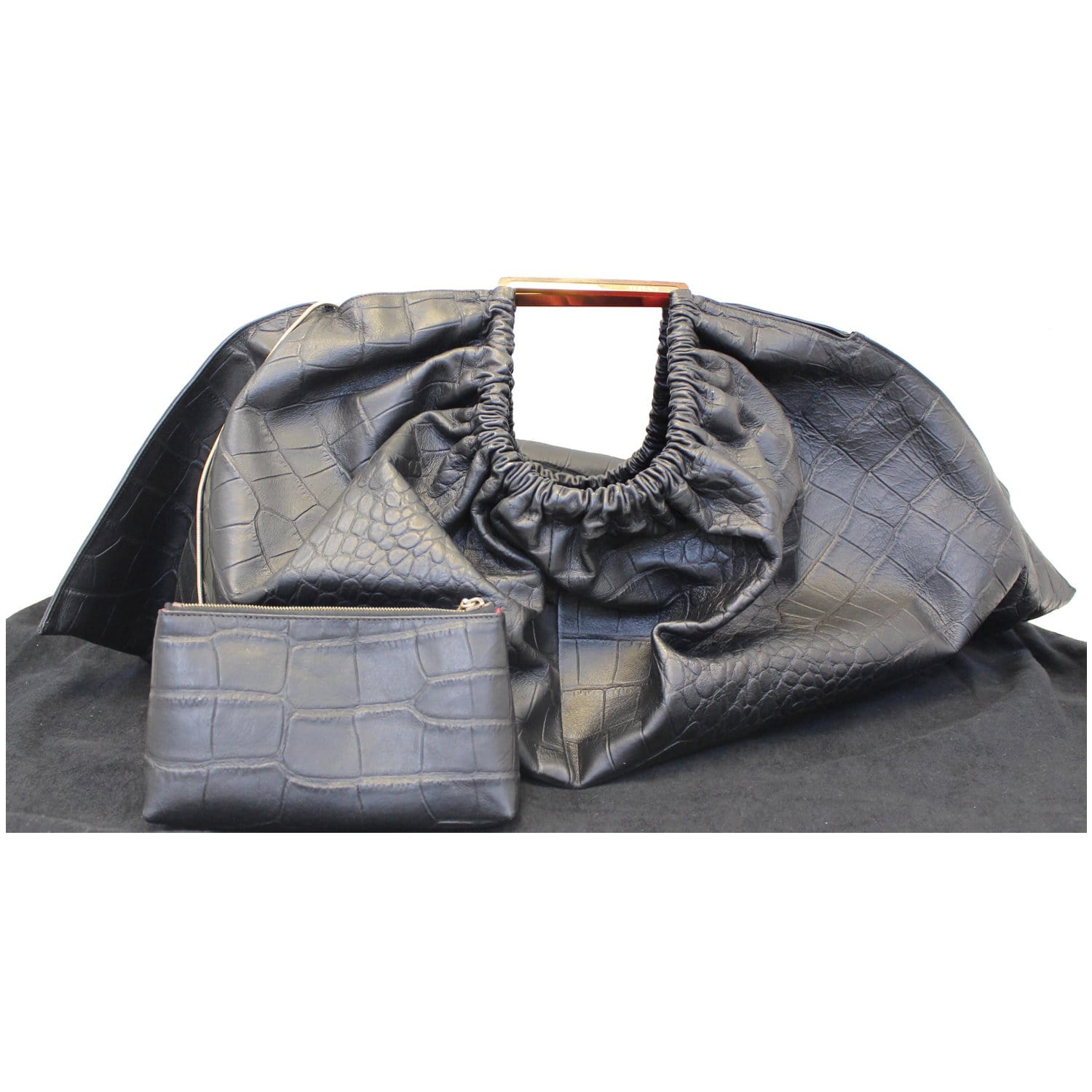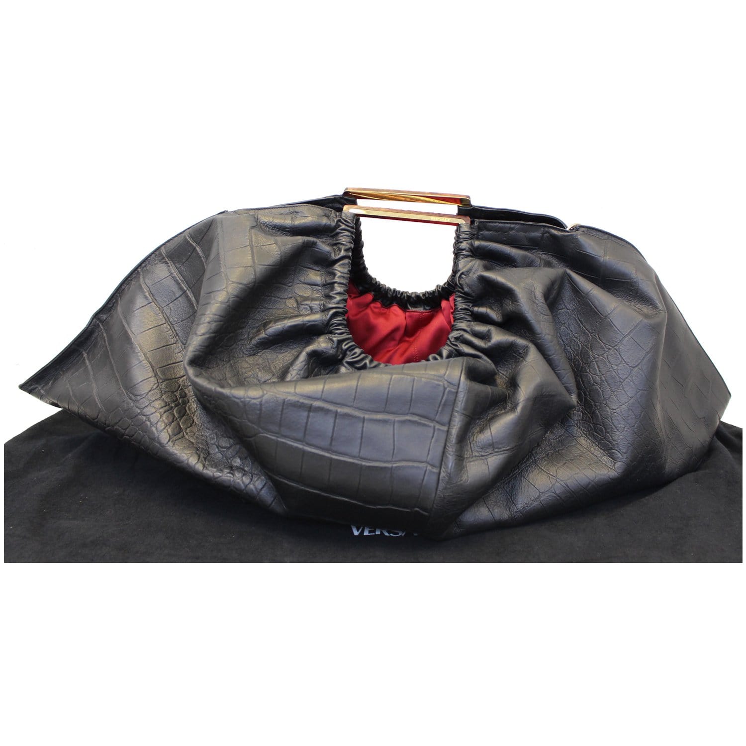 VERSACE Large Scale Embossed Leather Satchel Bag Black