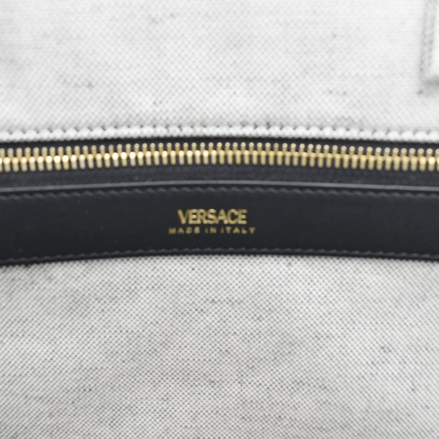 VERSACE Logo Fabric Canvas Tote Shoulder Bag White