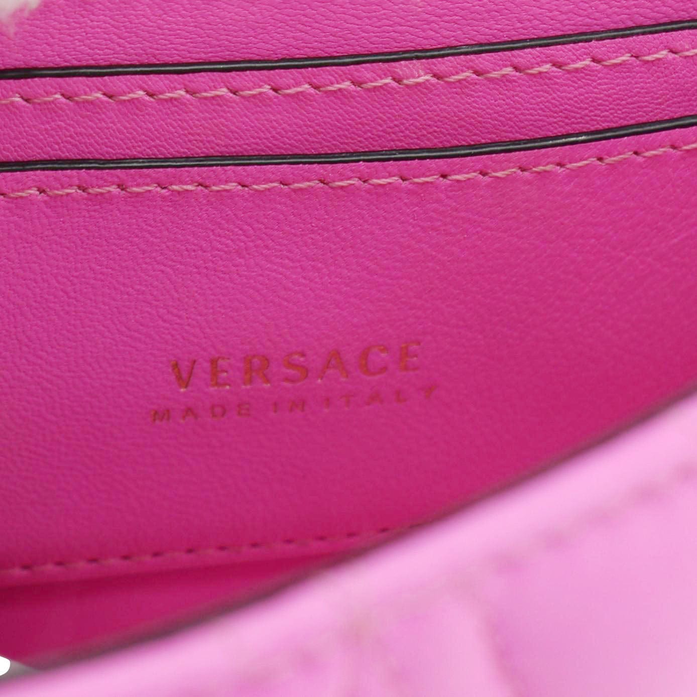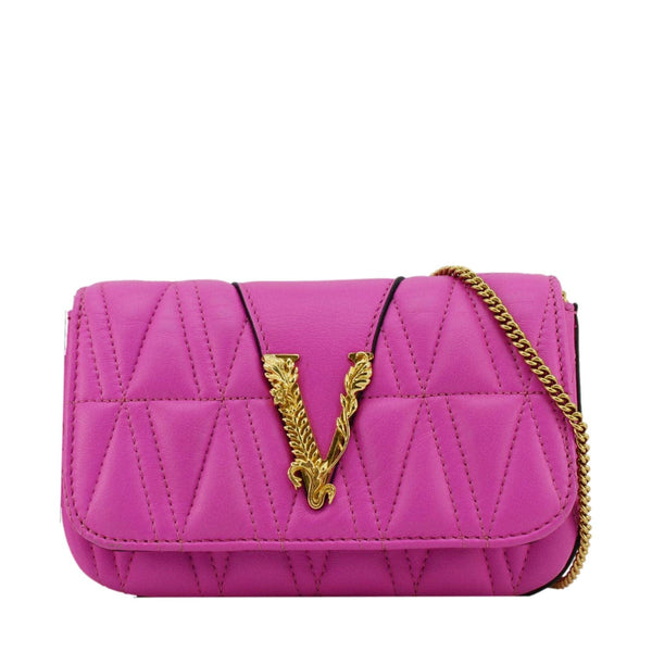 VERSACE Virtus Quilted Leather Chain Crossbody Bag Shock in Pink