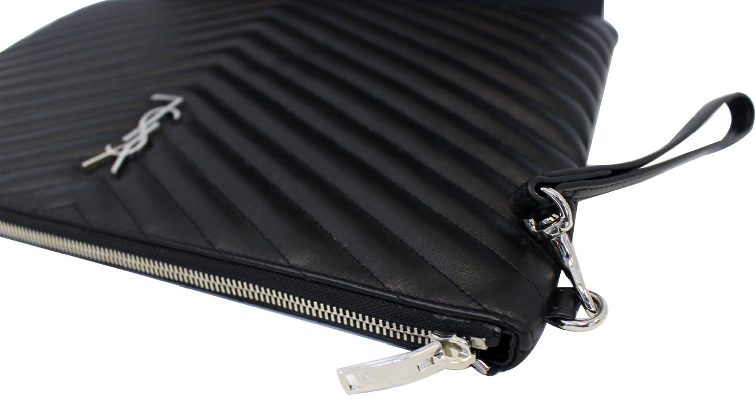 YVES SAINT LAURENT Monogram Black Leather Document Holder Clutch