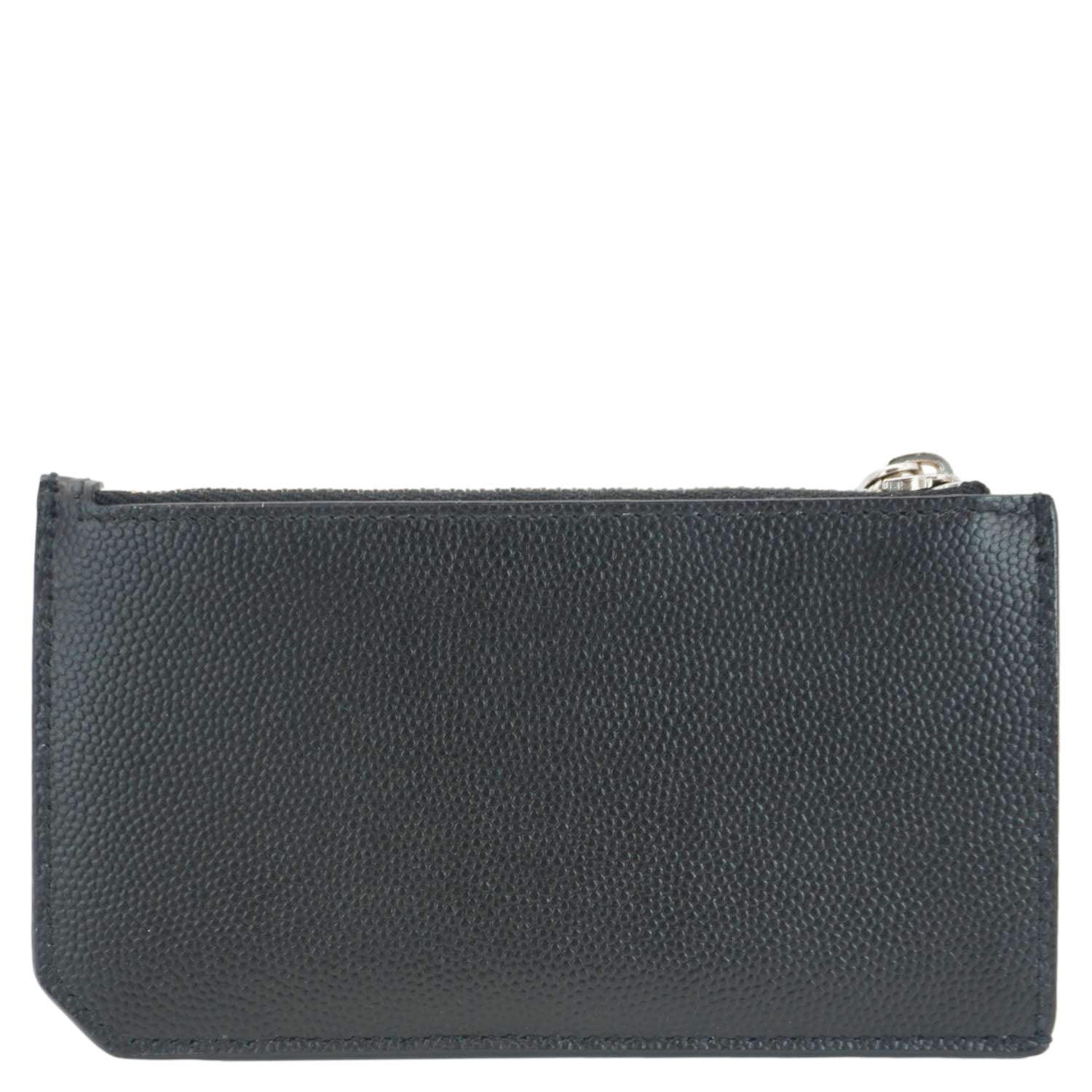 The Yves Saint Laurent Leather Coin Card Holder in black is a sleek and functional accessory. Featuring multiple card slots, a zippered coin pocket, and the iconic YSL logo, it’s perfect for stylish everyday organization.
