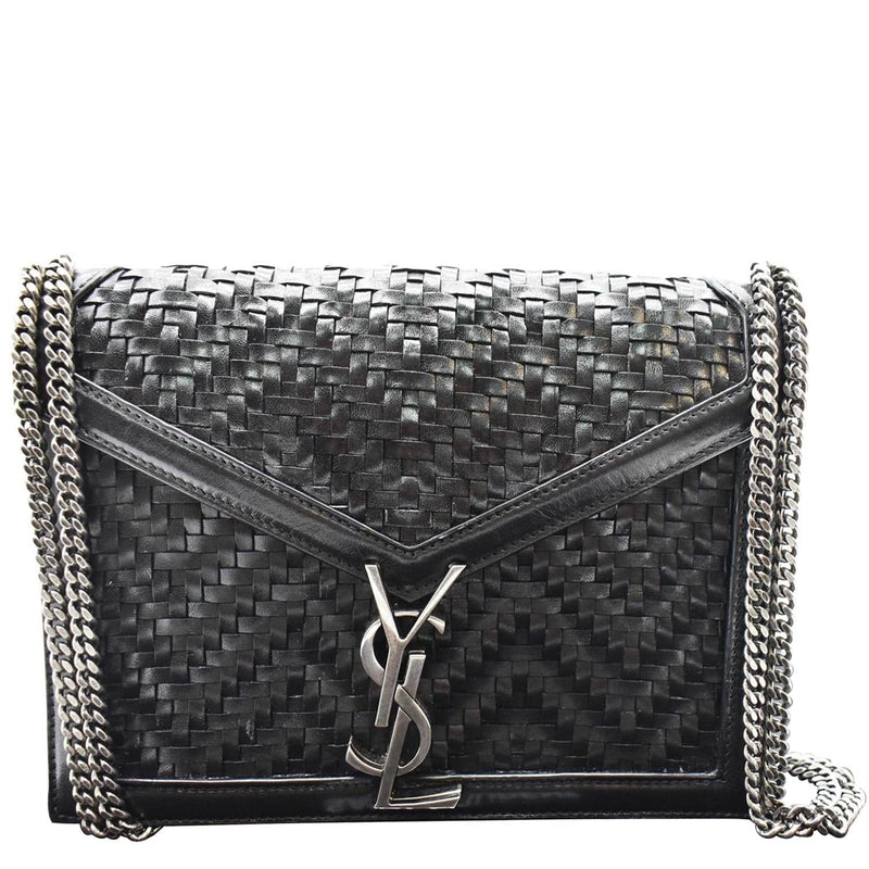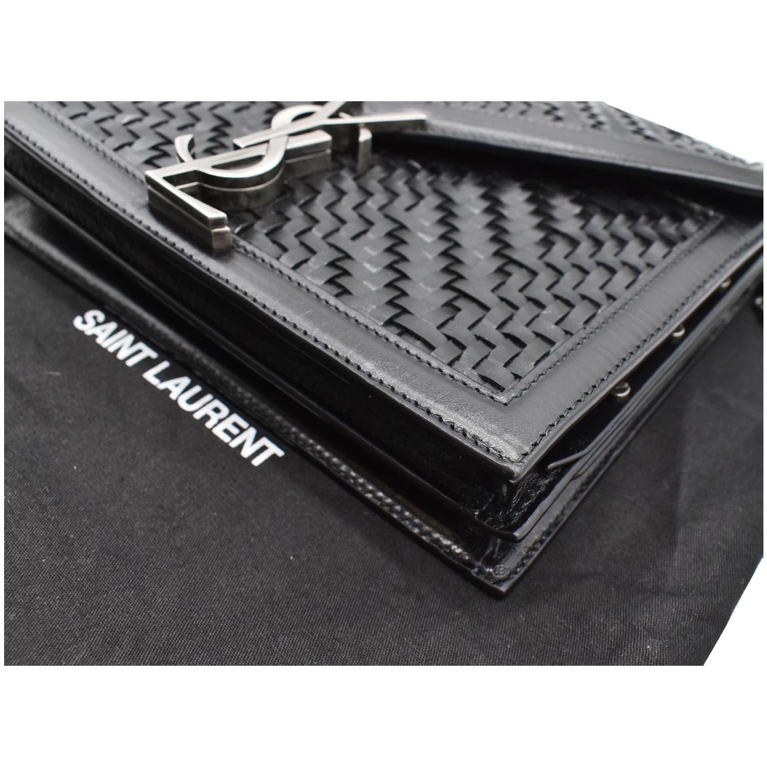 YVES SAINT LAURENT Cassandra Medium Woven Leather Chain Shoulder Bag Black