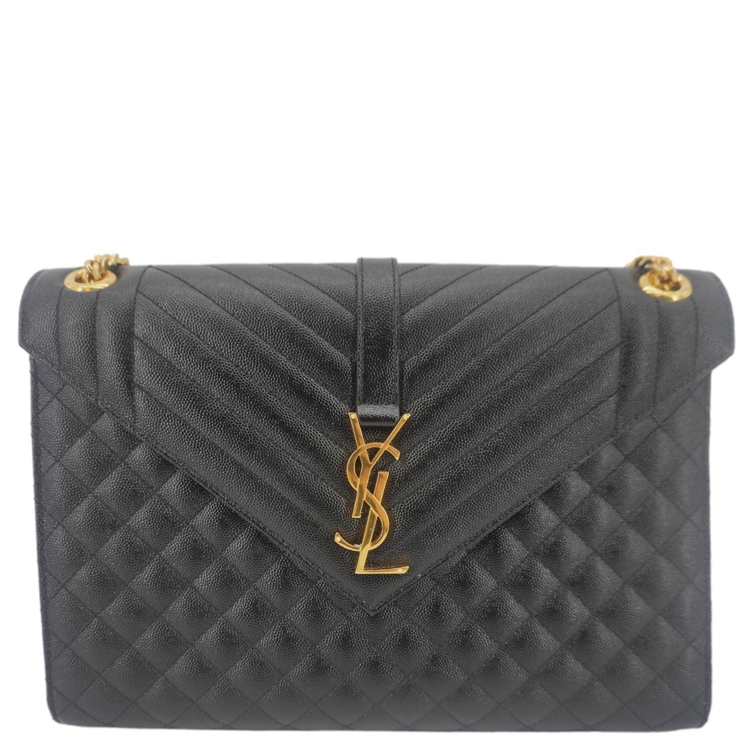YVES SAINT LAURENT Envelope Flap Leather Chain Shoulder Bag Black