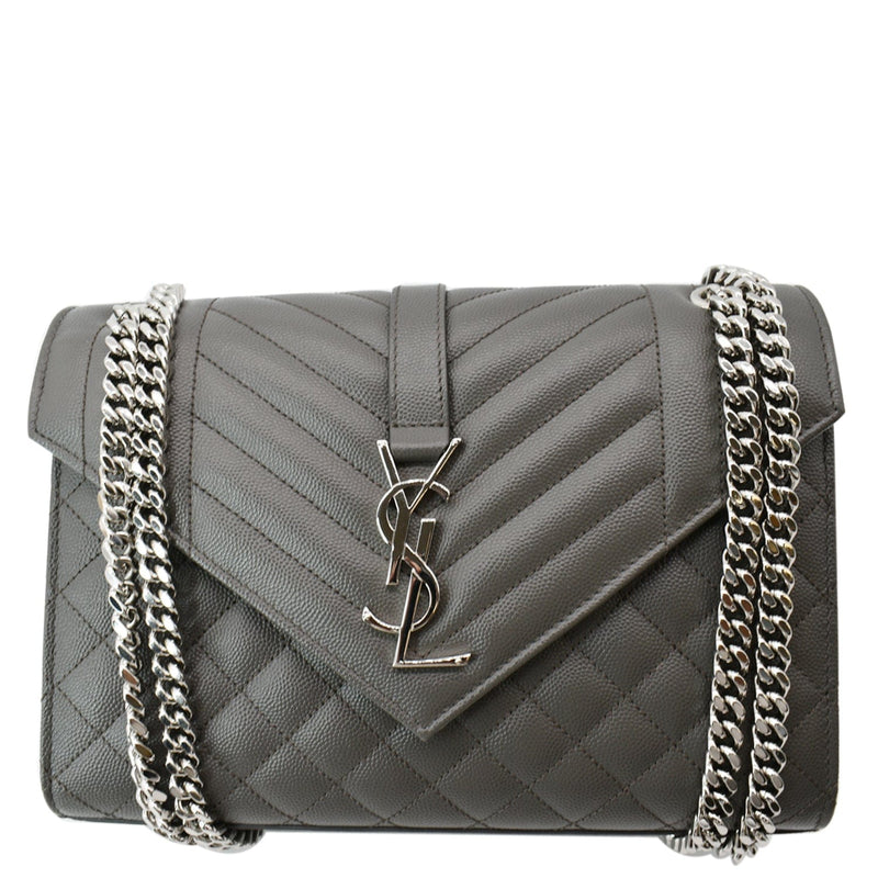 YVES SAINT LAURENT Envelope Chain Medium Mix Matelassé Leather Crossbody Bag Grey