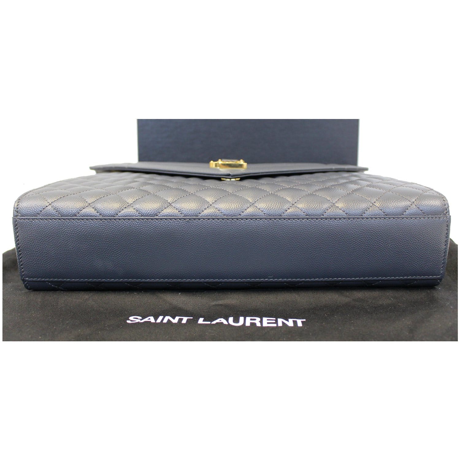 YVES SAINT LAURENT Envelope Large Matelasse Embossed Leather Shoulder Bag Dark Smog