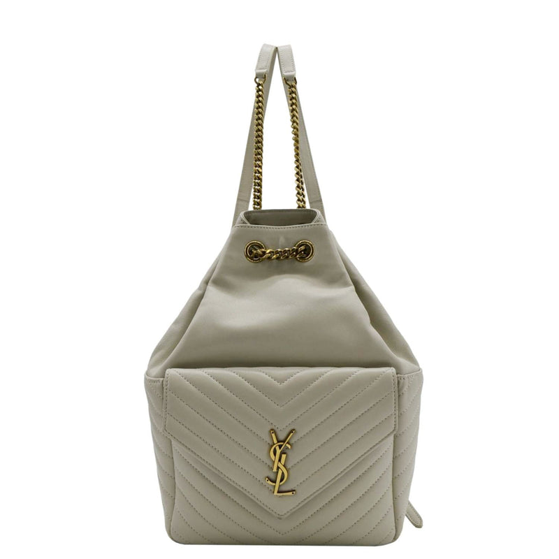 YVES SAINT LAURENT Leather Joe Drawstring White Backpack Bag