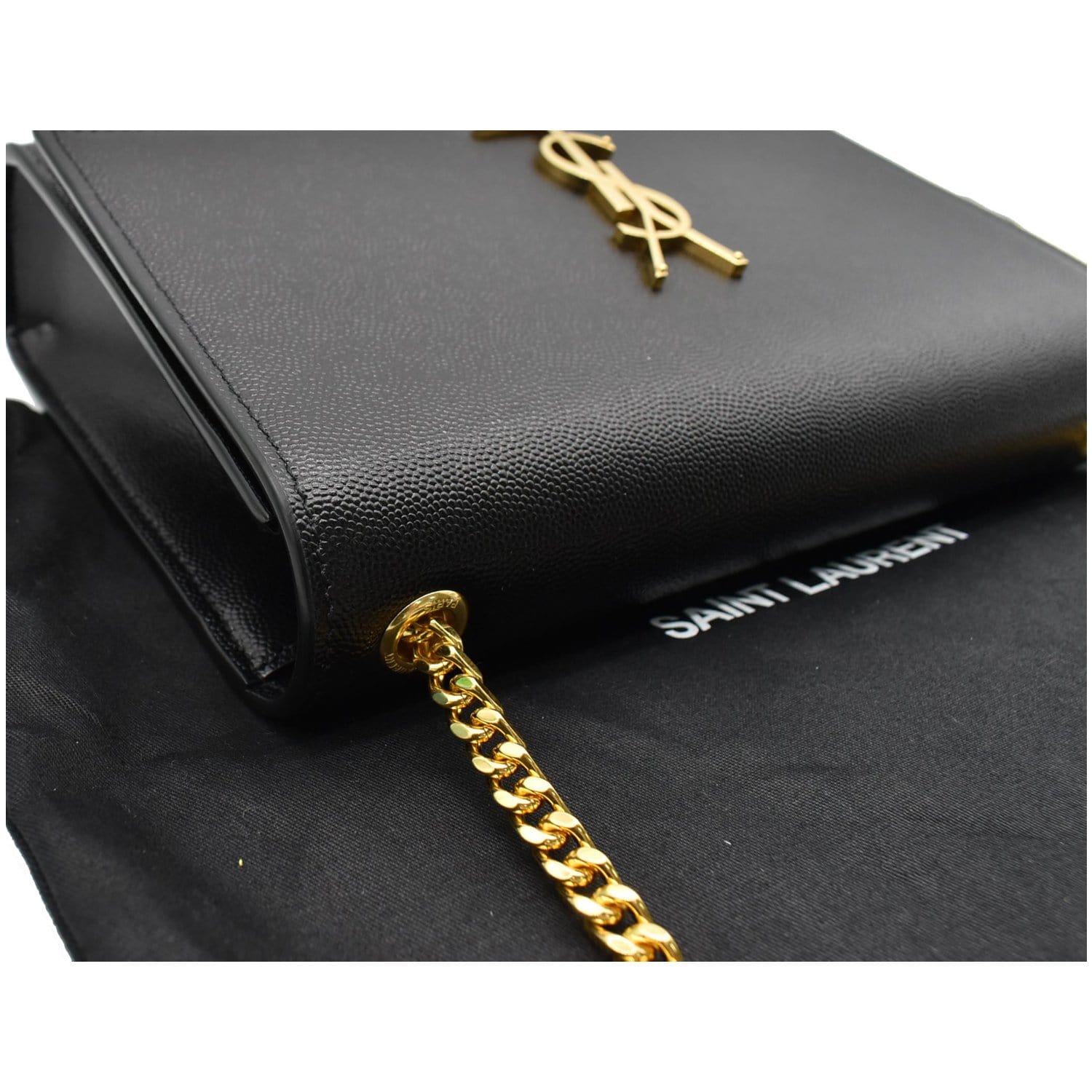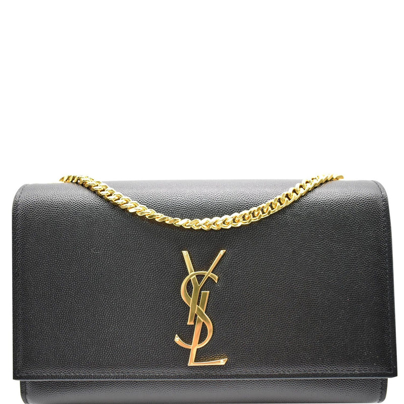 Kate Leather Gold Chain Clutch Crossbody Bag Black