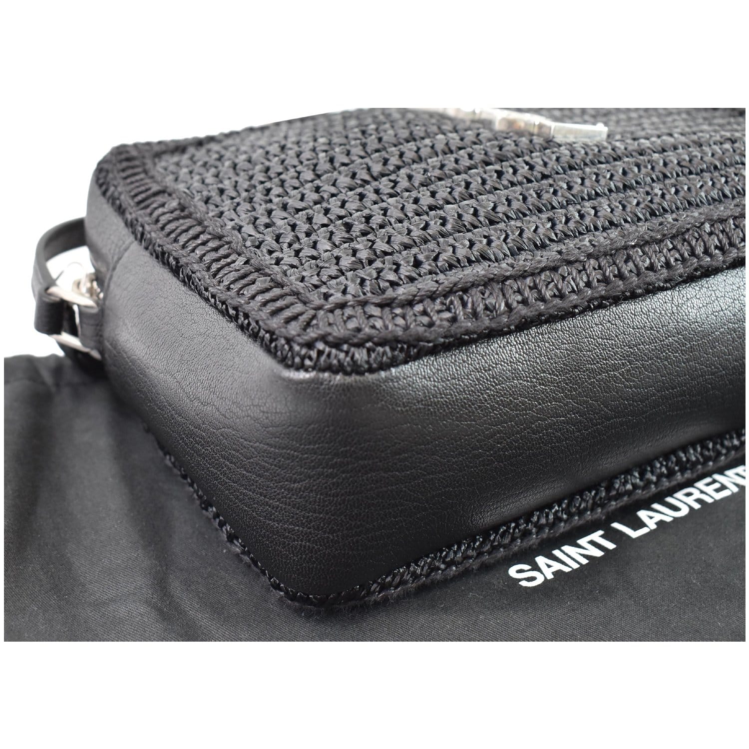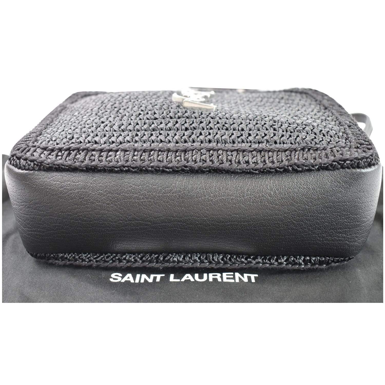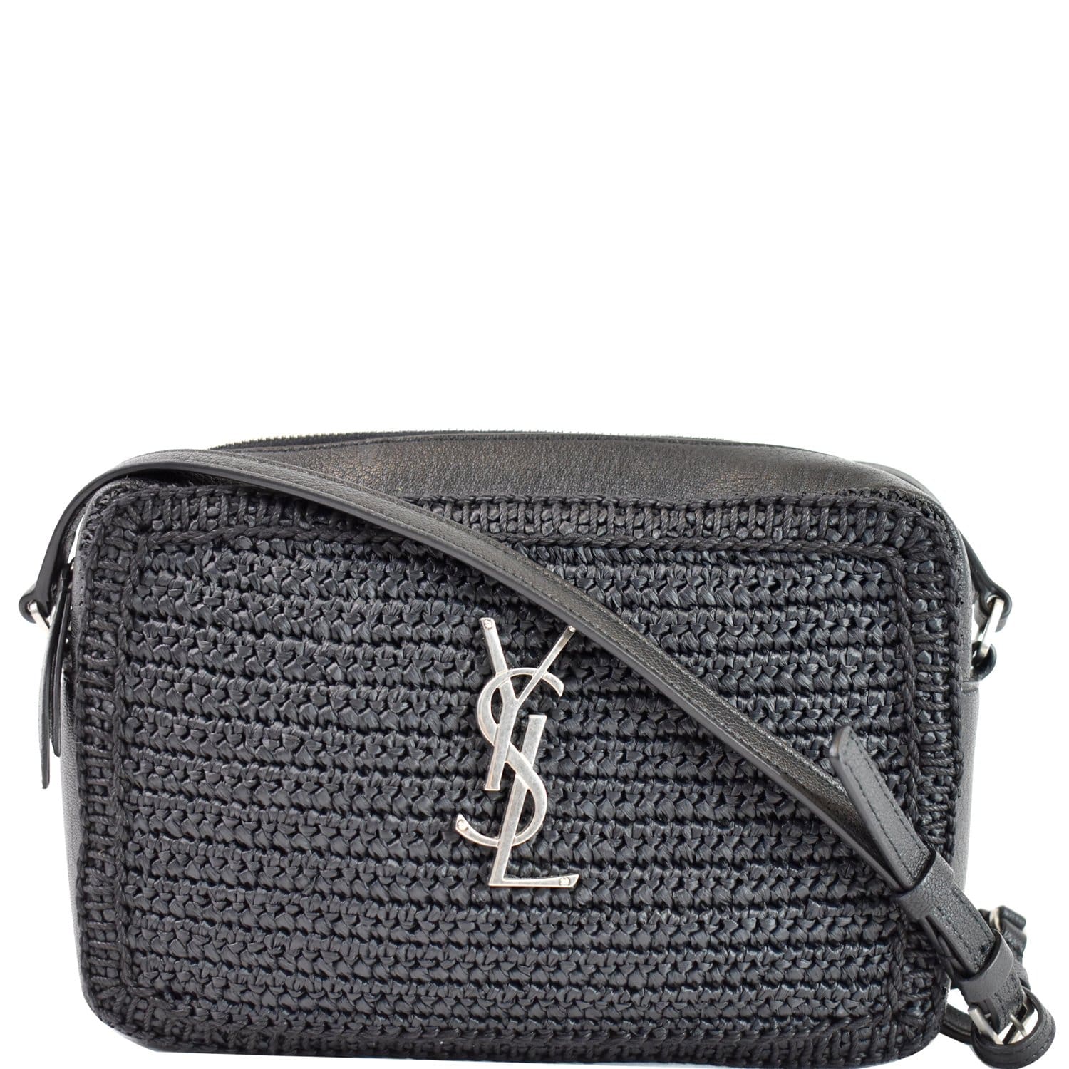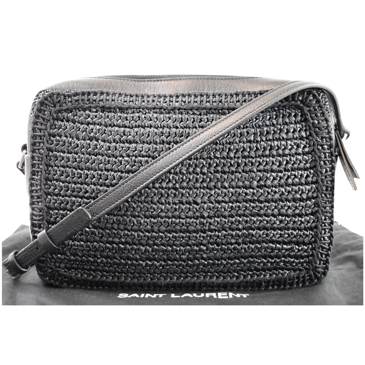 Lou Camera Raffia Canvas Crossbody Bag Black