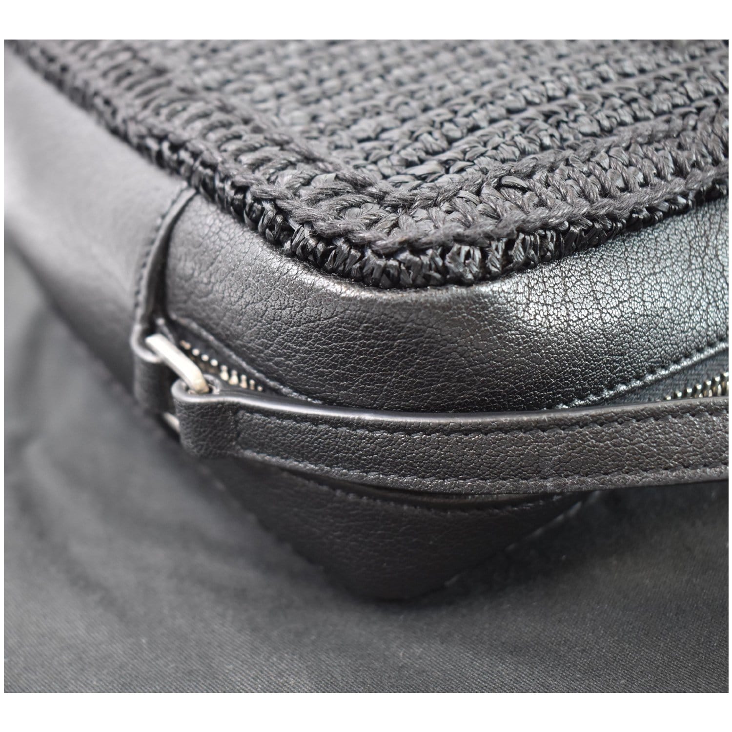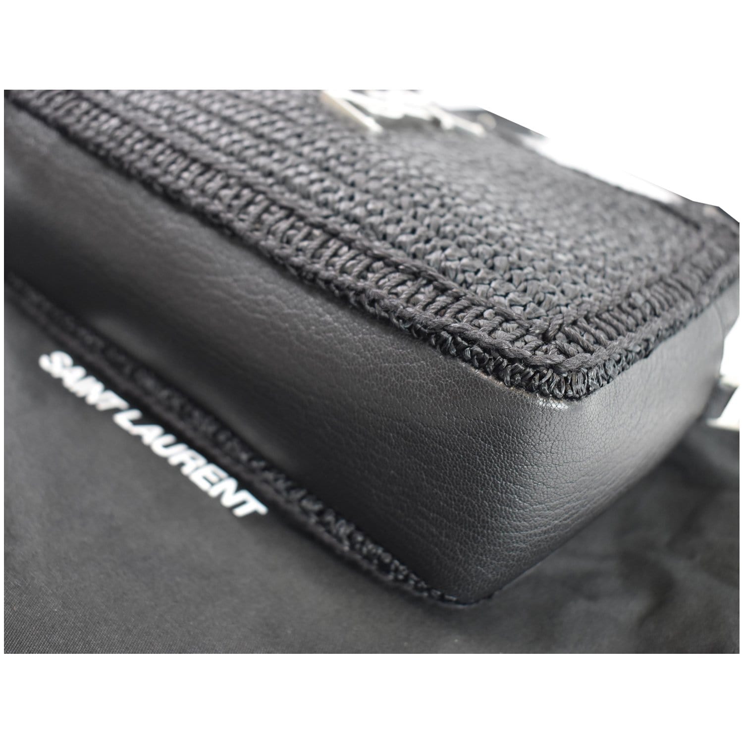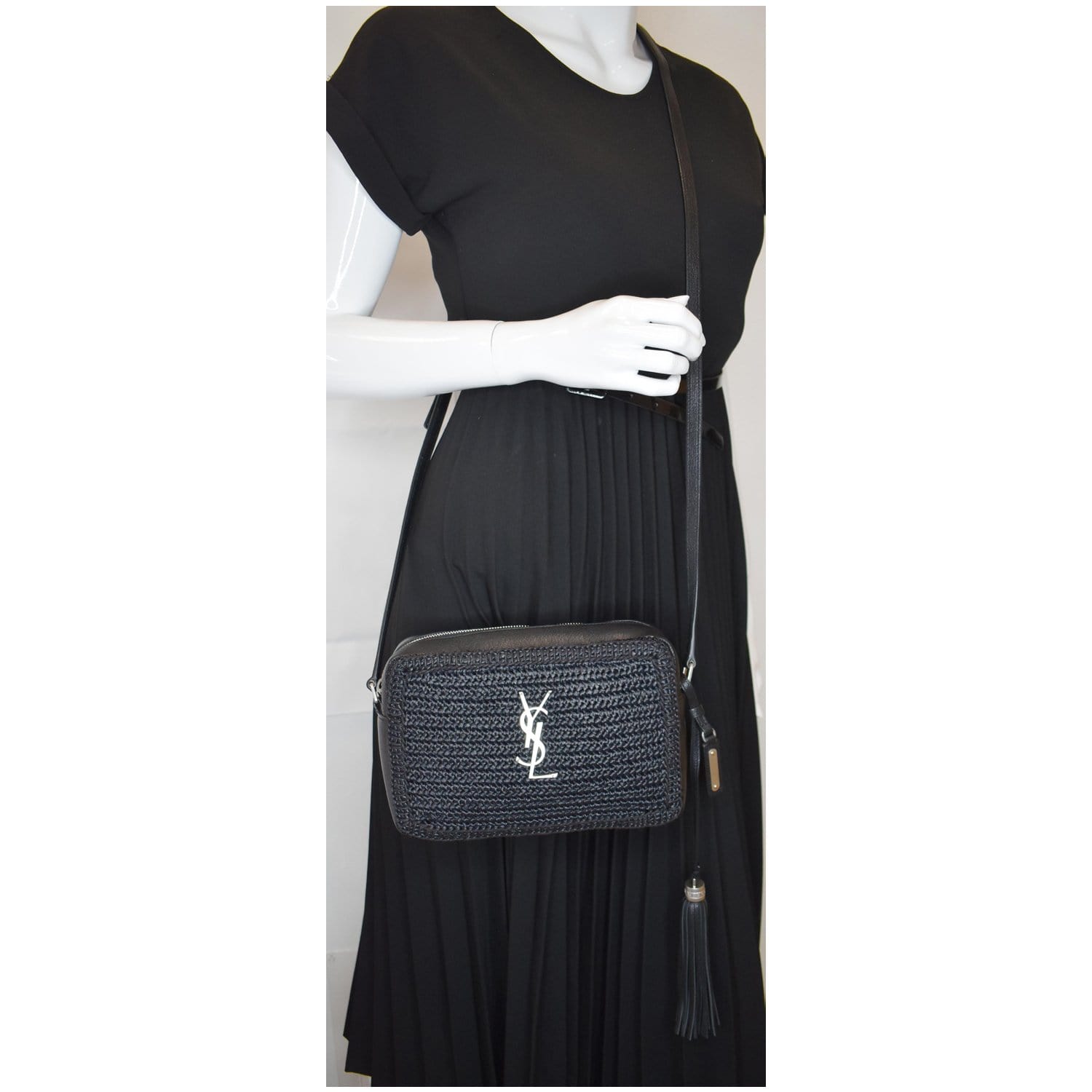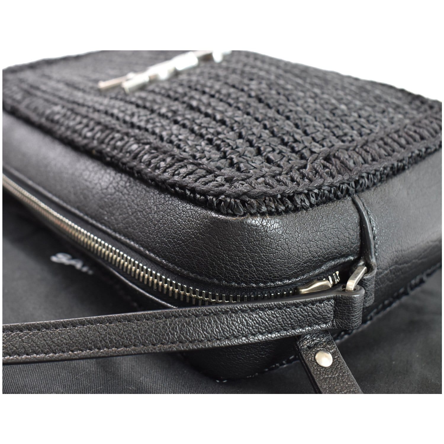 Lou Camera Raffia Canvas Crossbody Bag Black
