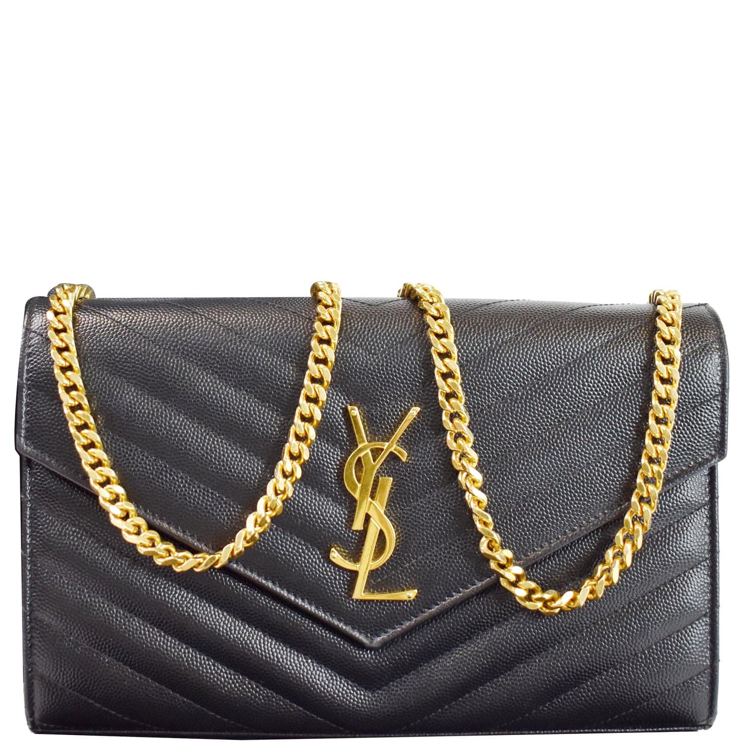 YVES SAINT LAURENT Matelasse Chevron Grain De Poudre Envelope Chain Wallet Black