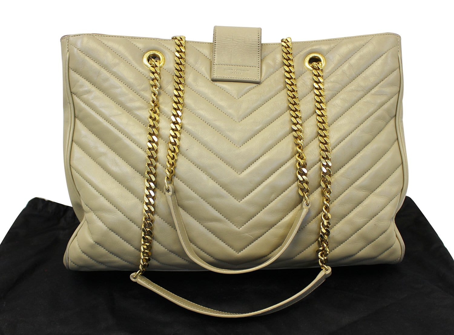 YVES SAINT LAURENT Matelasse Chevron Monogram Shopper Beige Bag - Final Call
