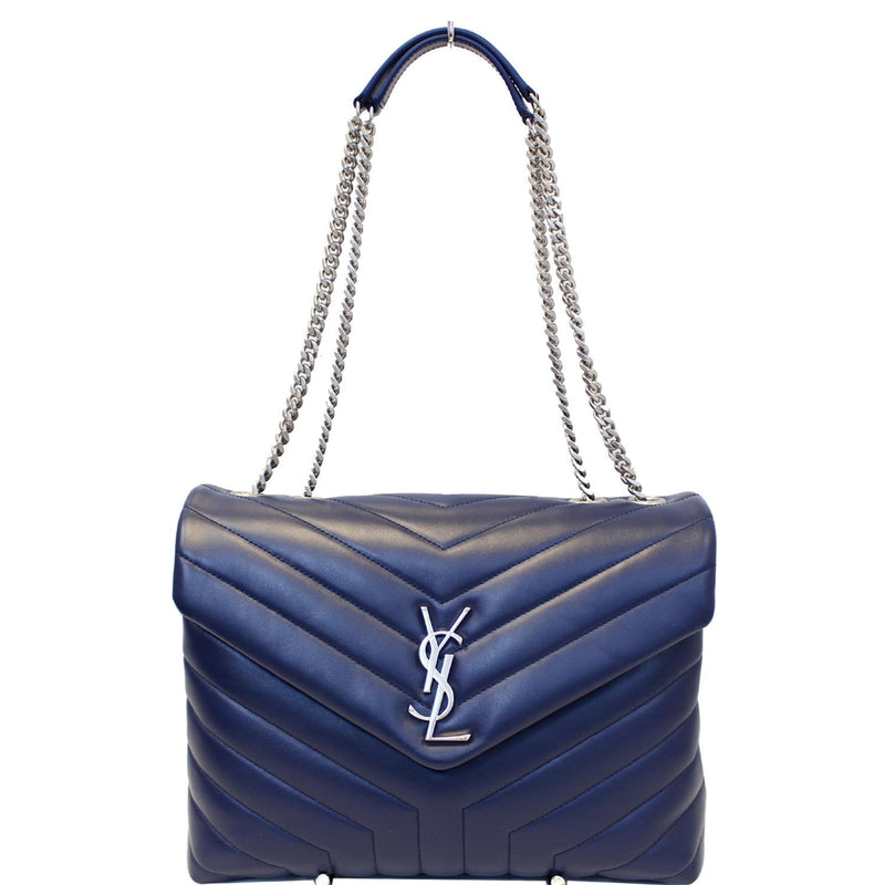 YVES SAINT LAURENT Matelasse Loulou Monogram Calfskin Shoulder Bag Blue
