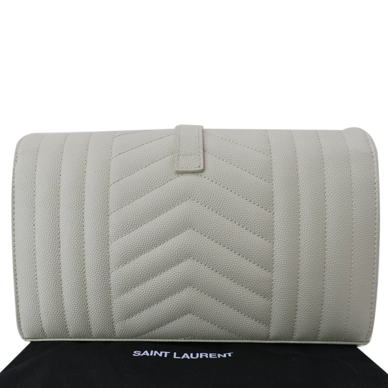 YVES SAINT LAURENT Mix Matelassé Small Grain De Poudre Chain Wallet Crossbody Bag Cream