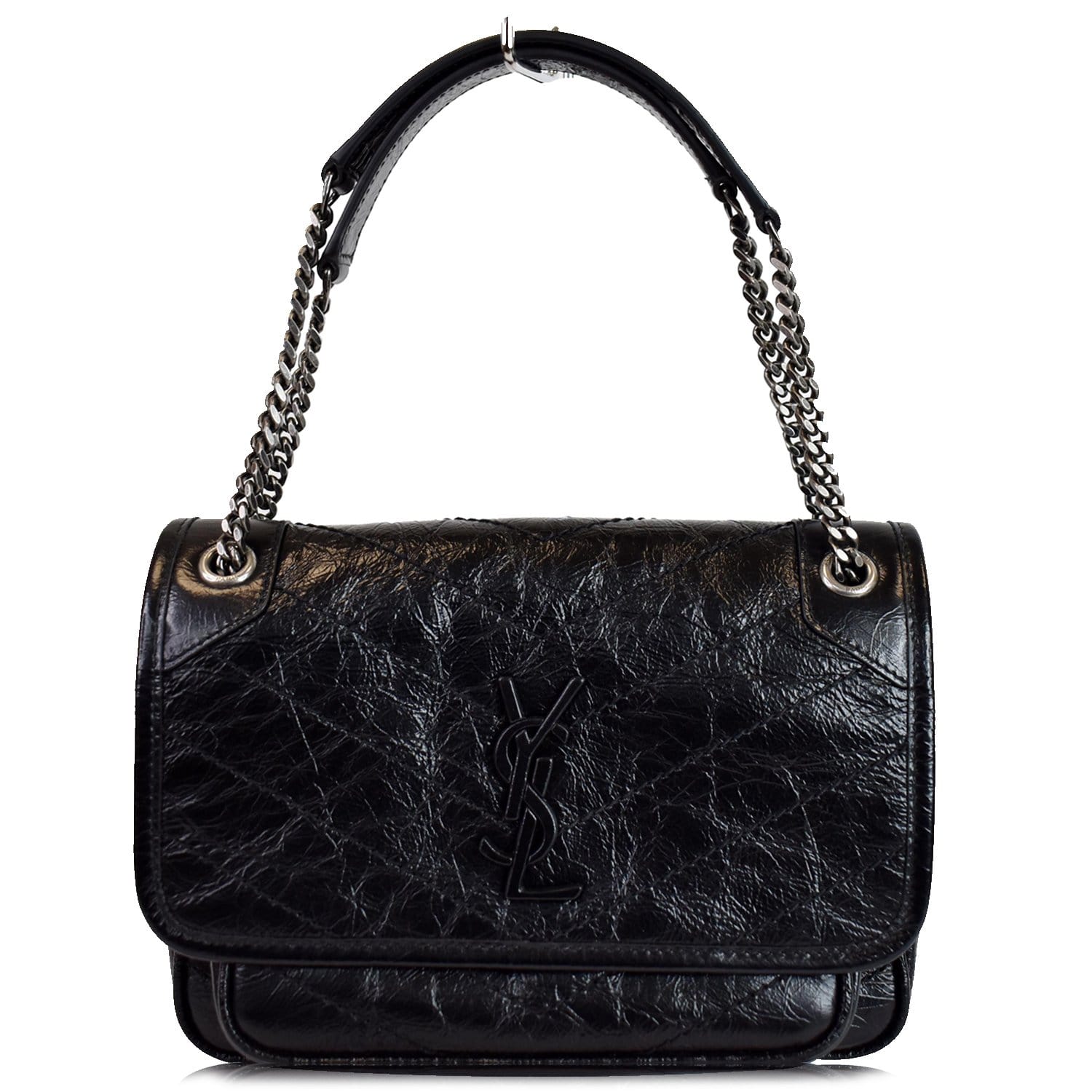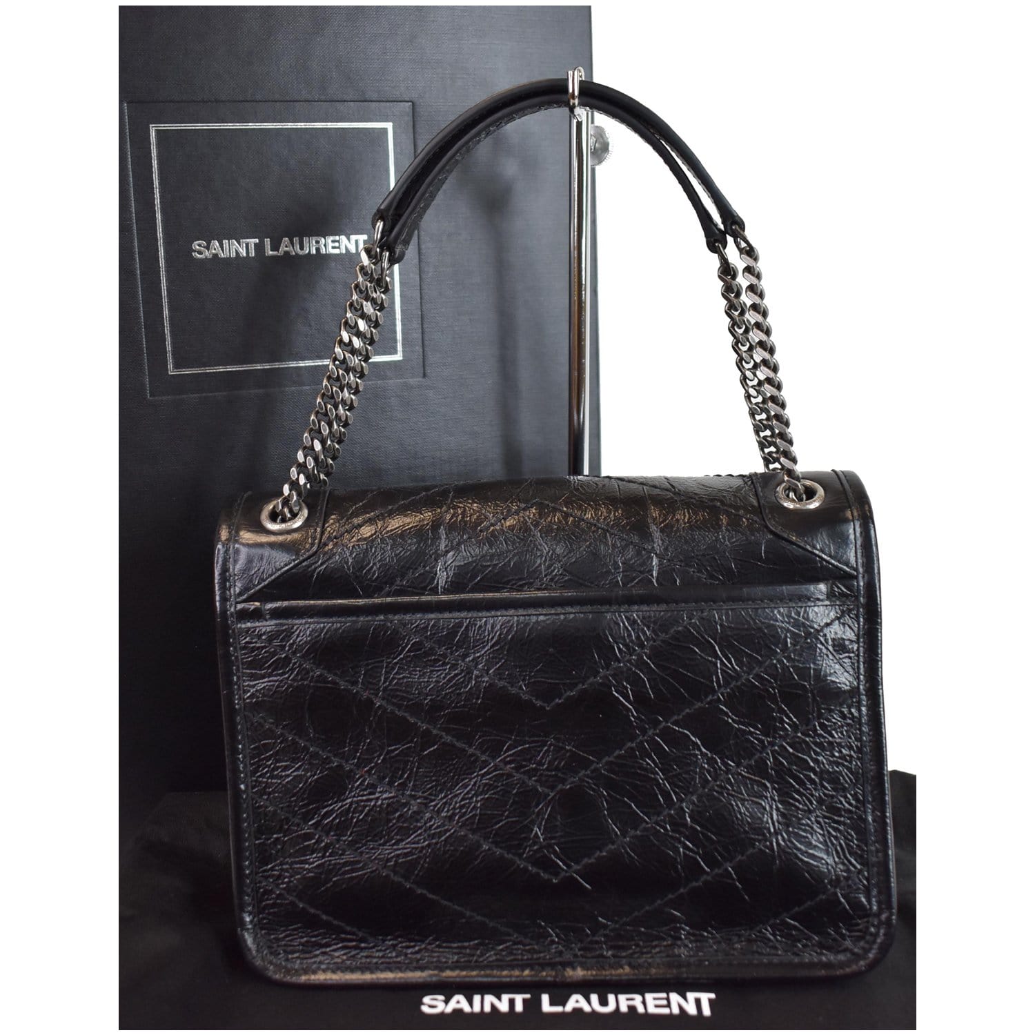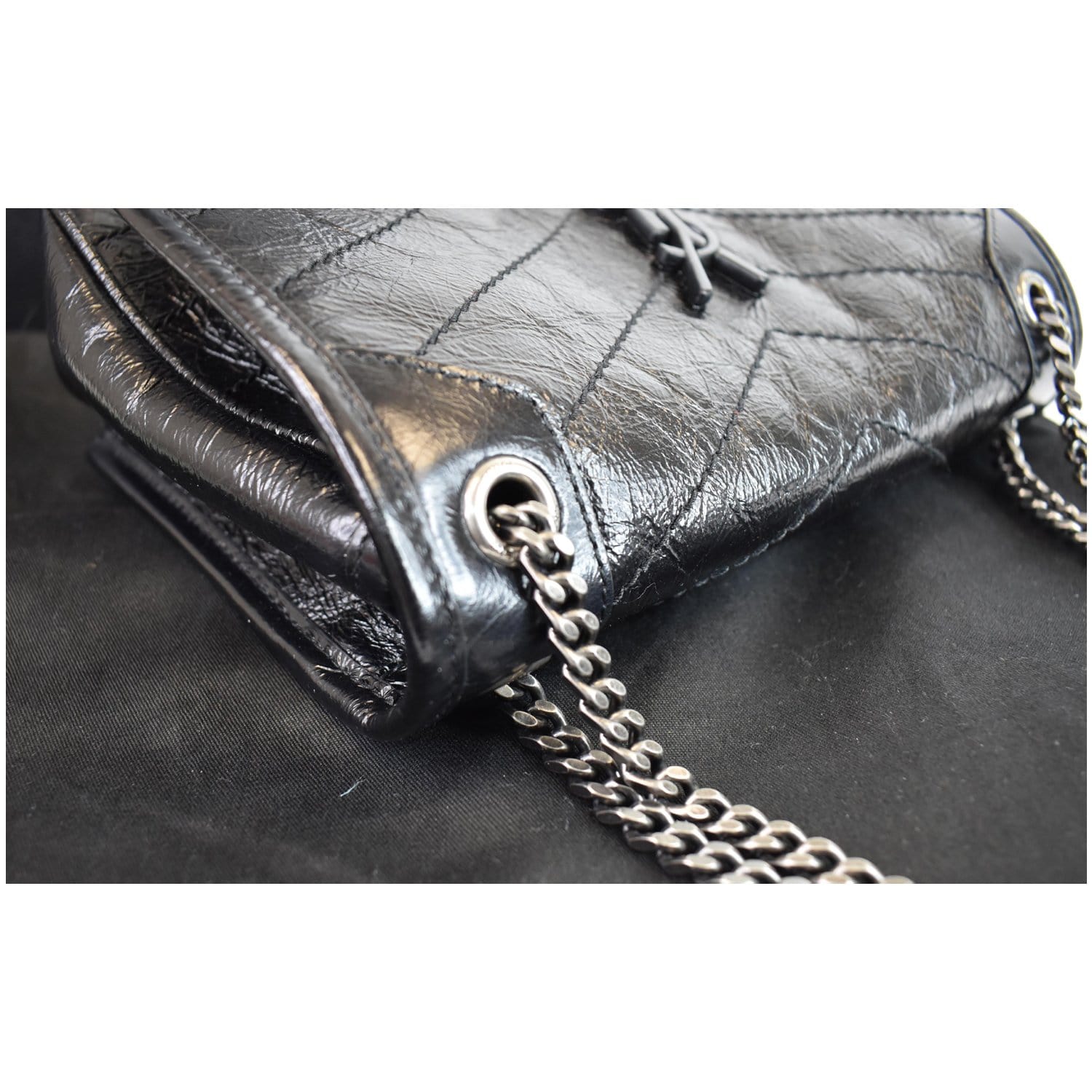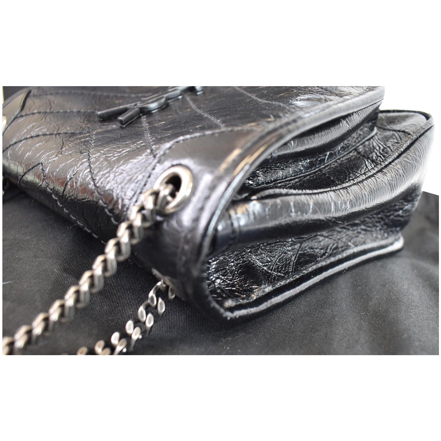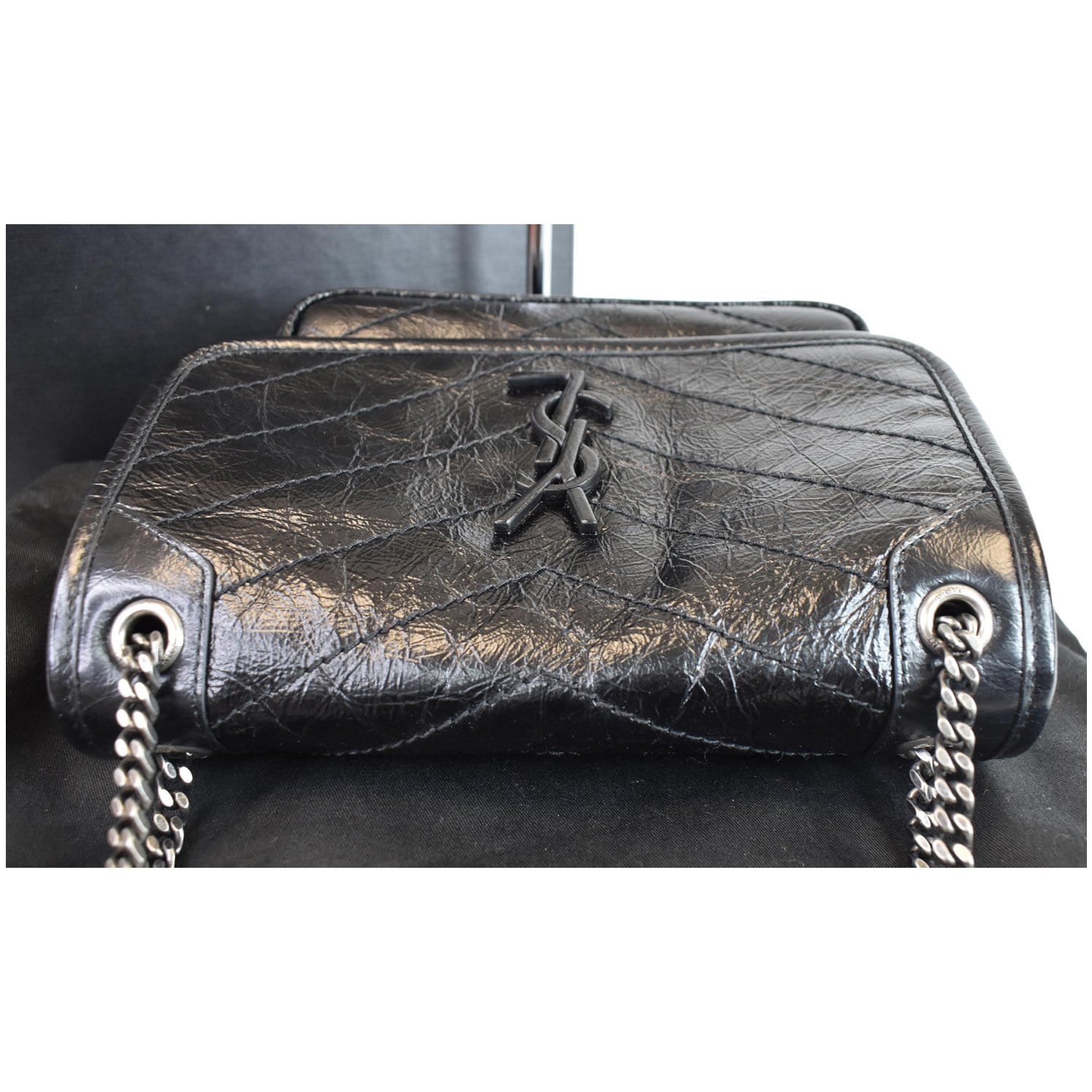 YVES SAINT LAURENT Niki Baby Crinkle Leather Crossbody Bag Black