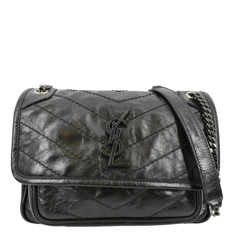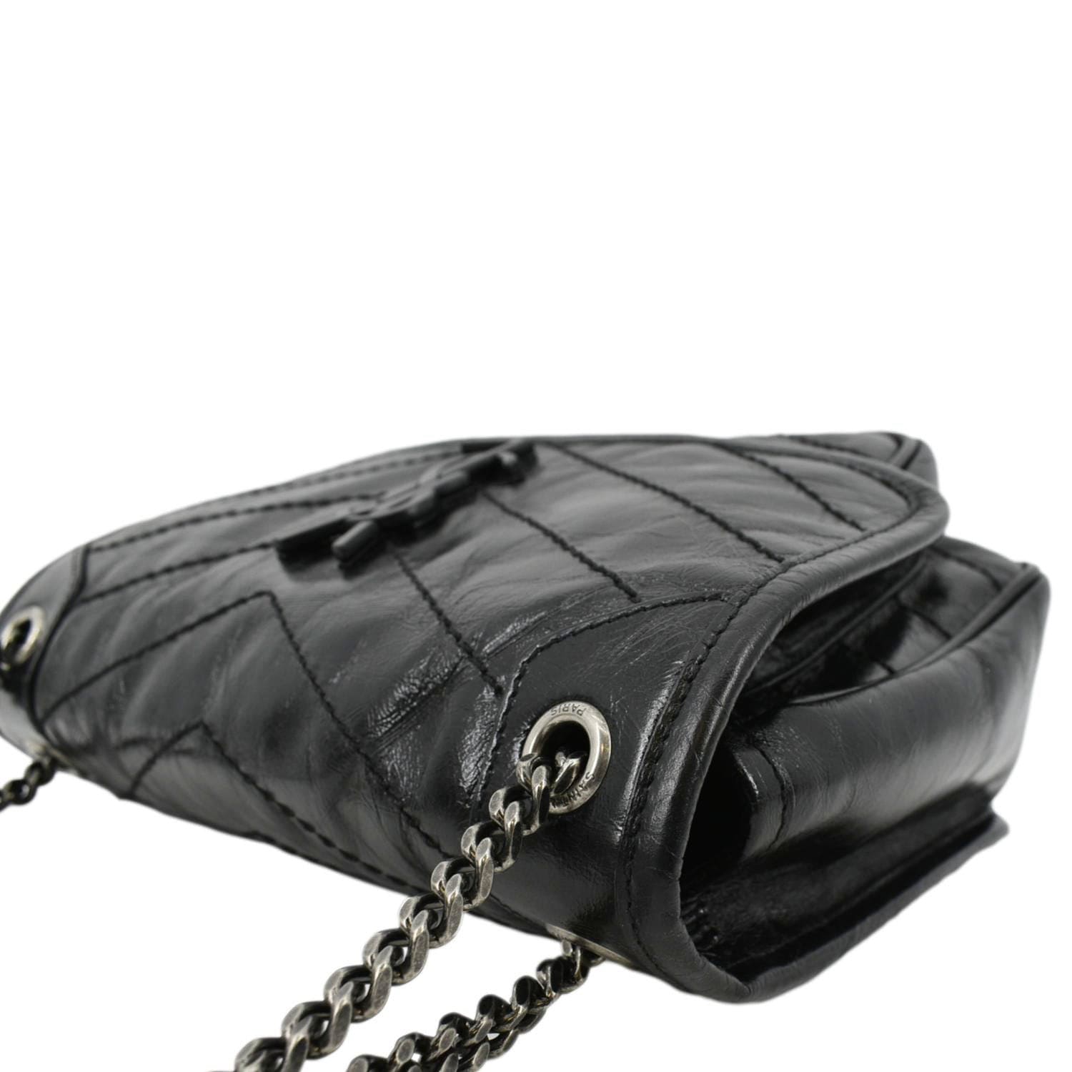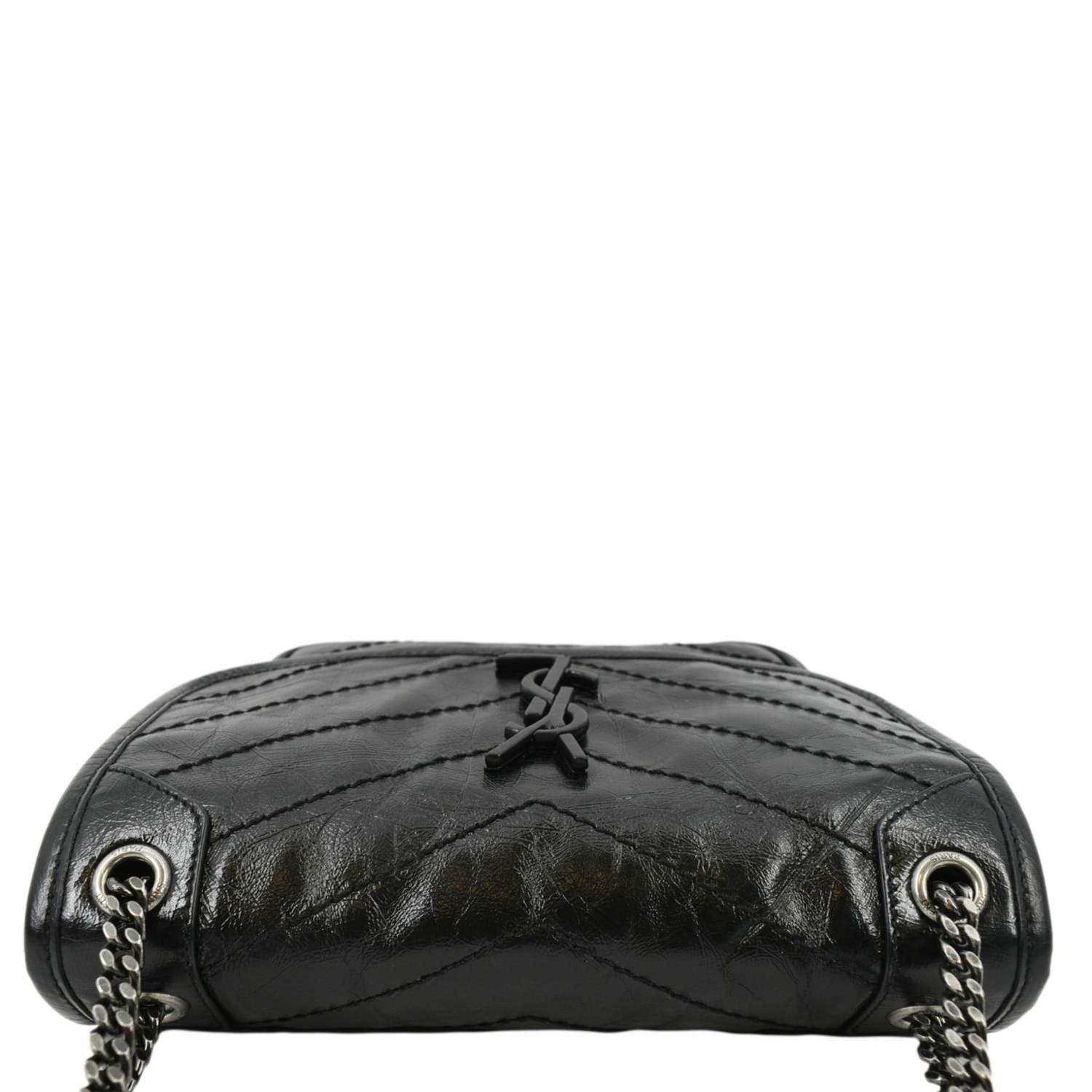 YVES SAINT LAURENT Niki Baby Crinkle Leather Shoulder Bag Black