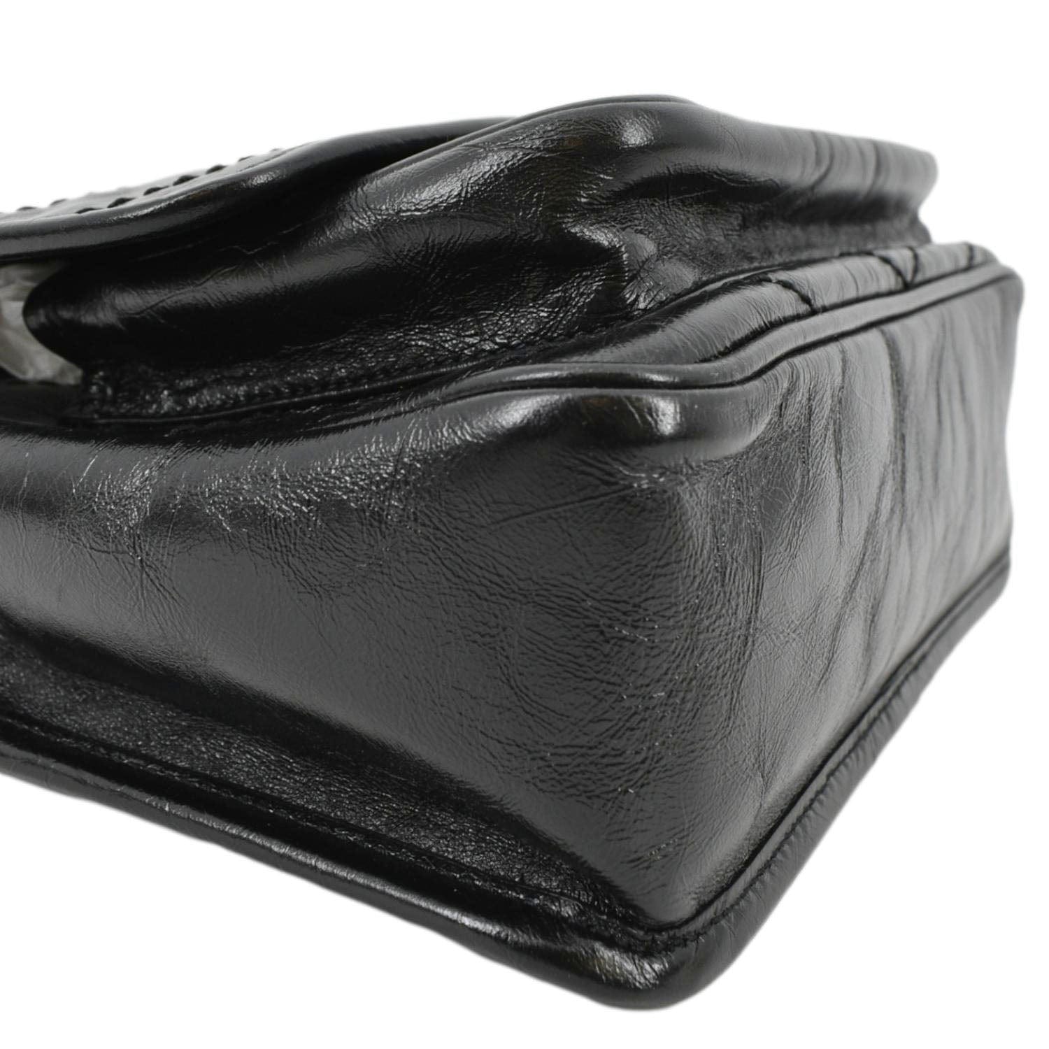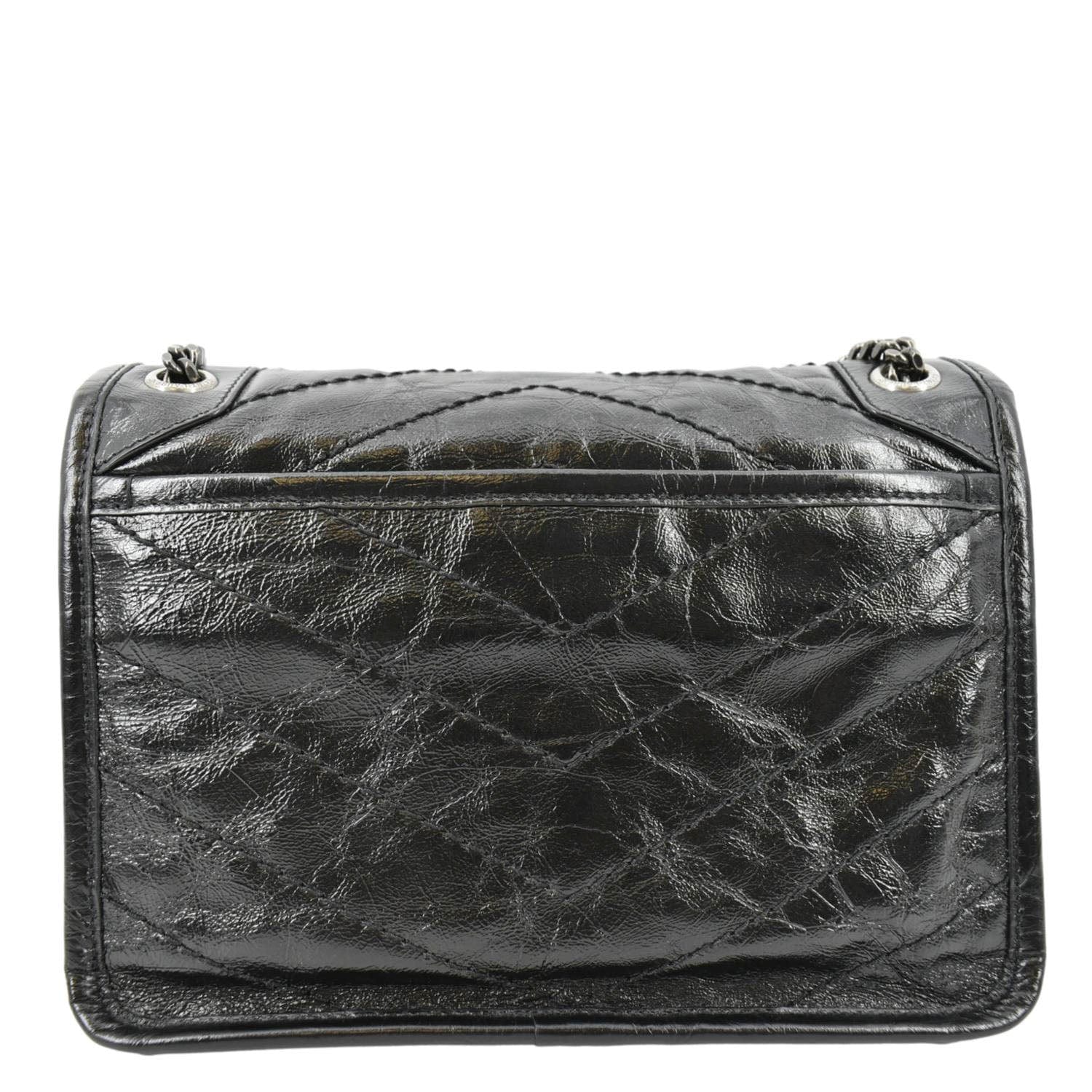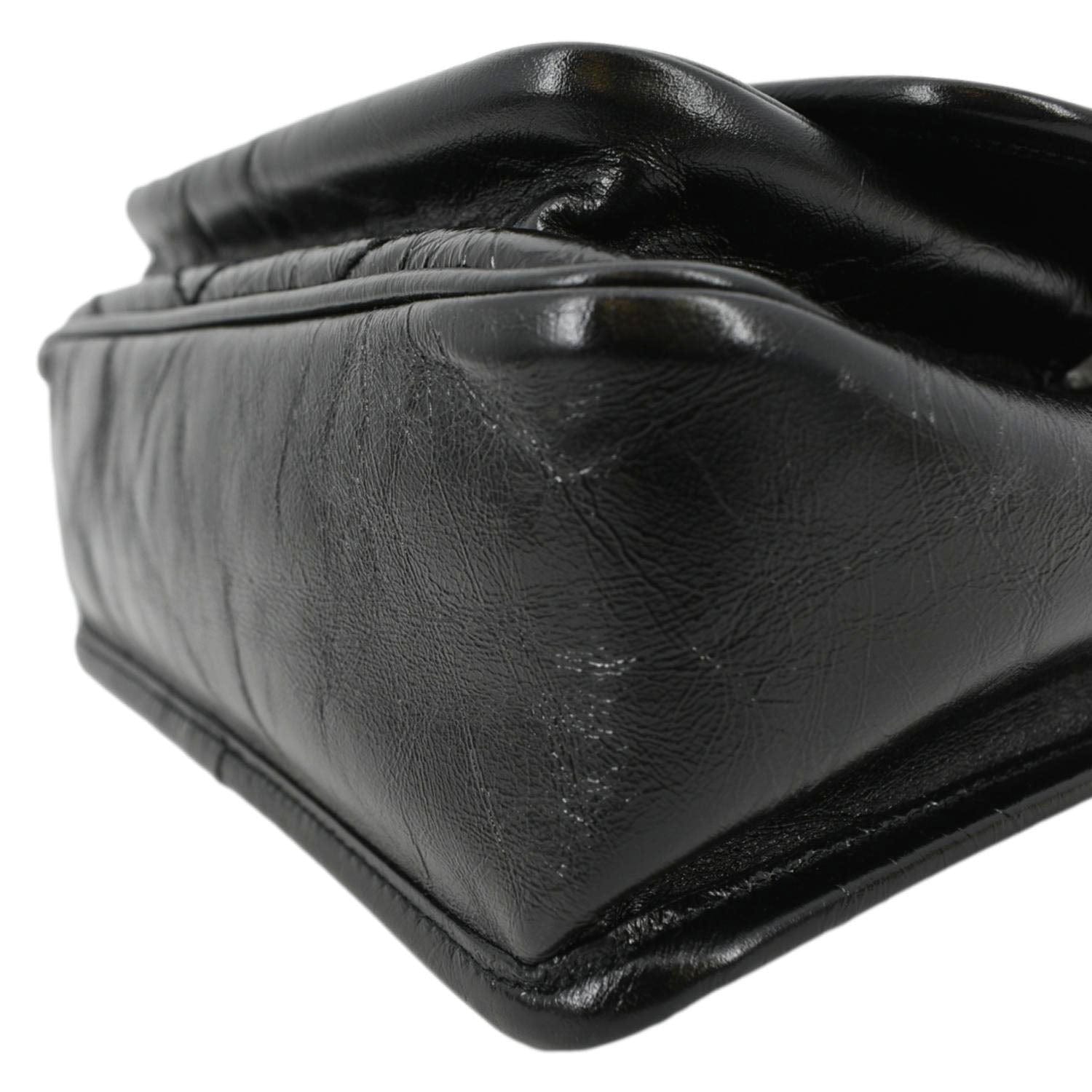 YVES SAINT LAURENT Niki Baby Crinkle Leather Shoulder Bag Black