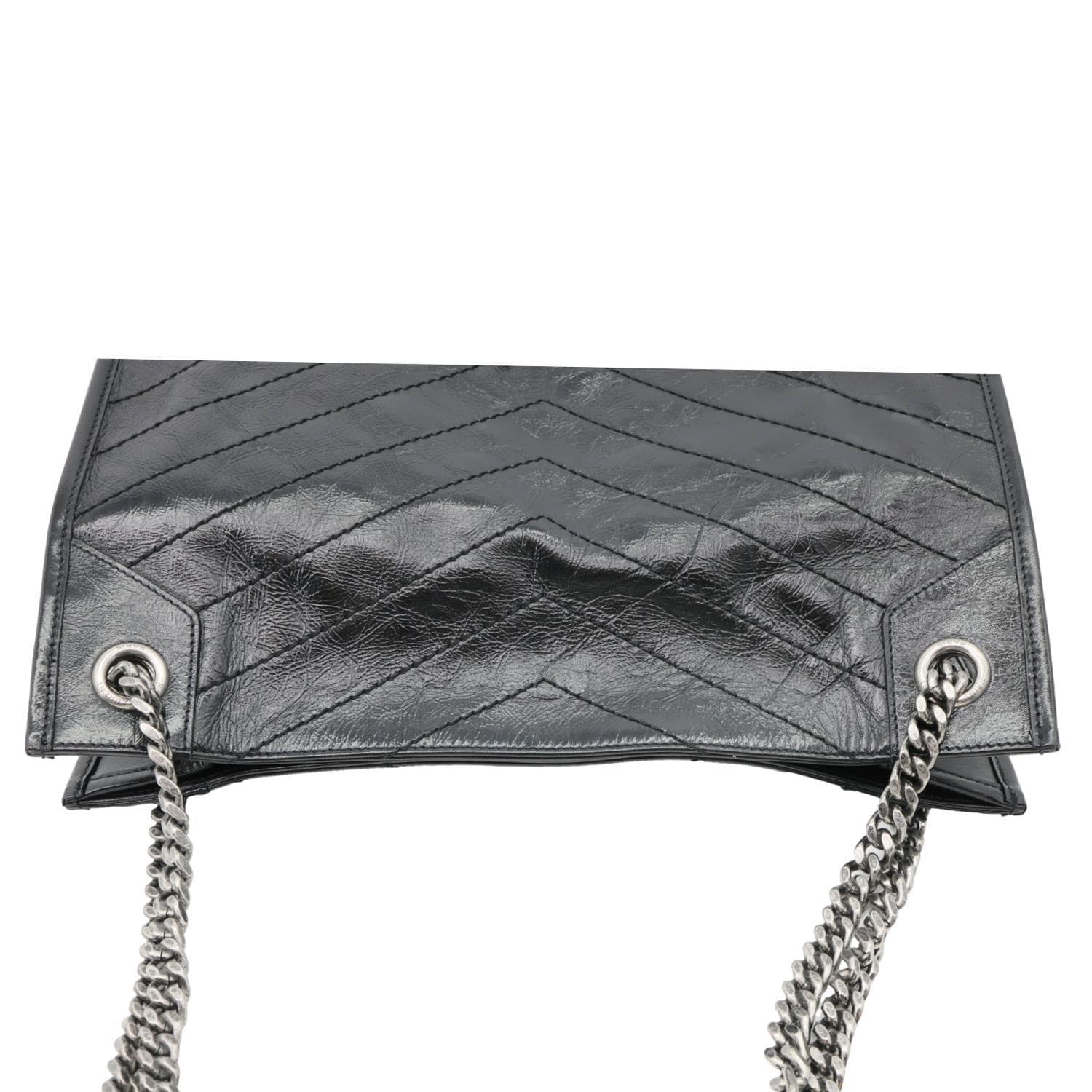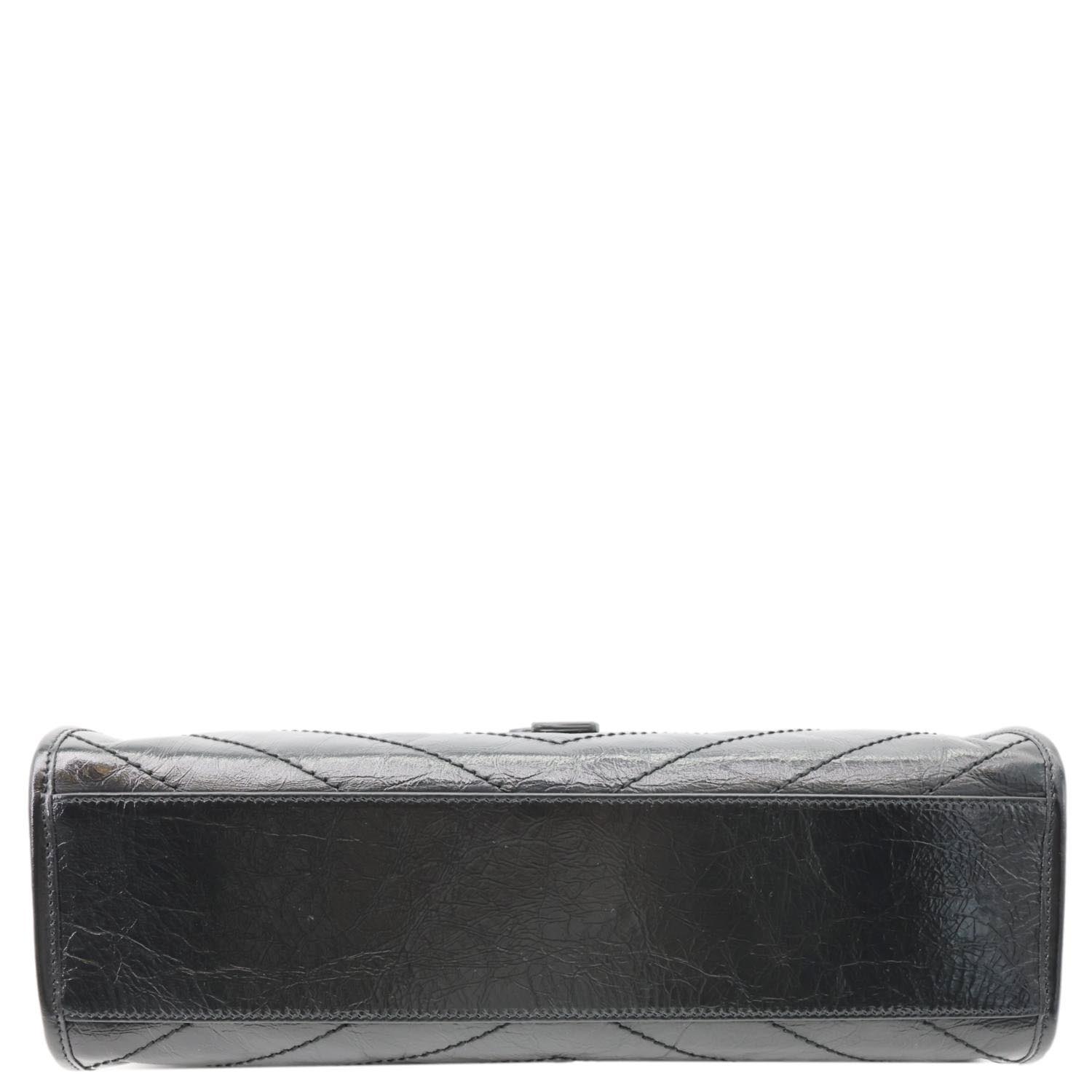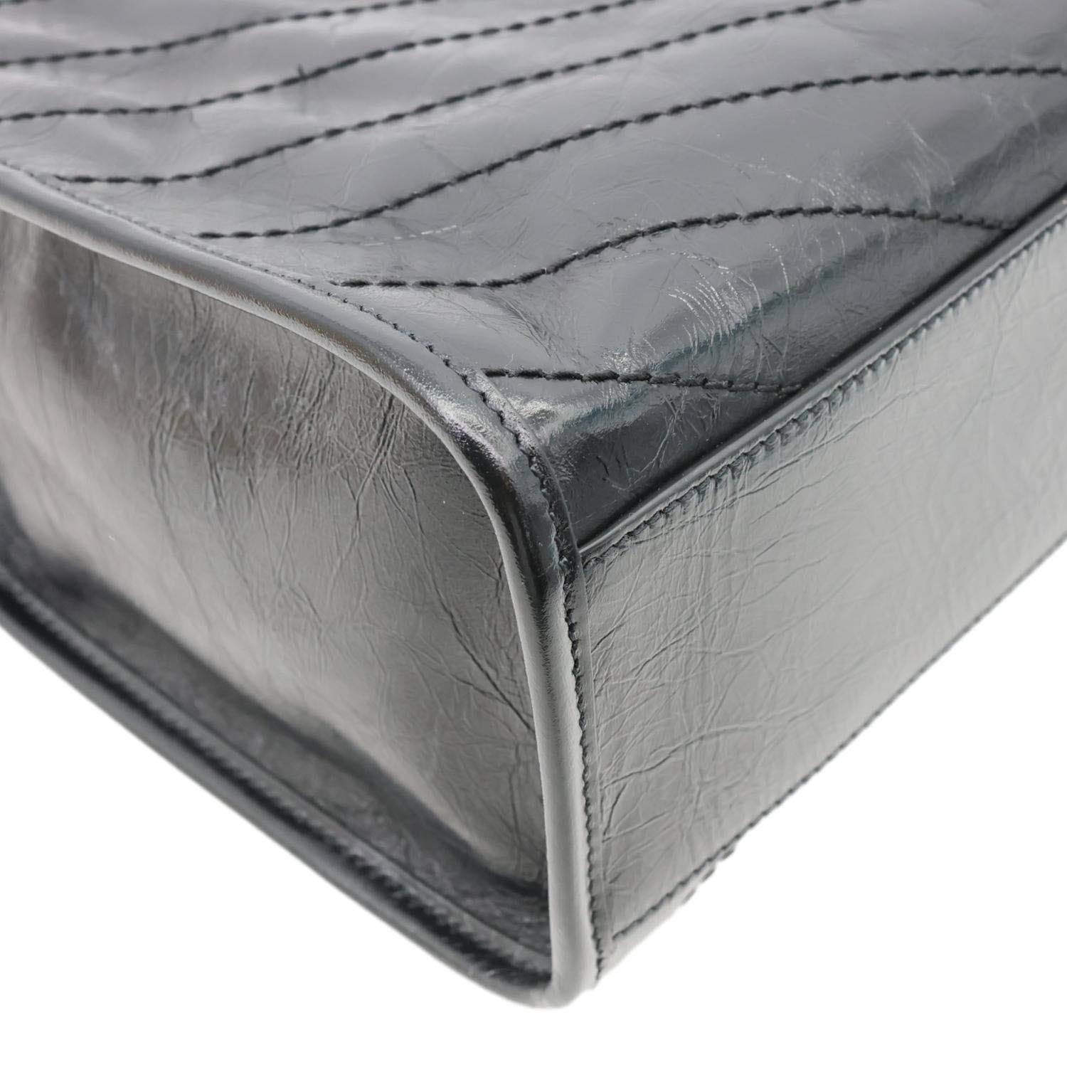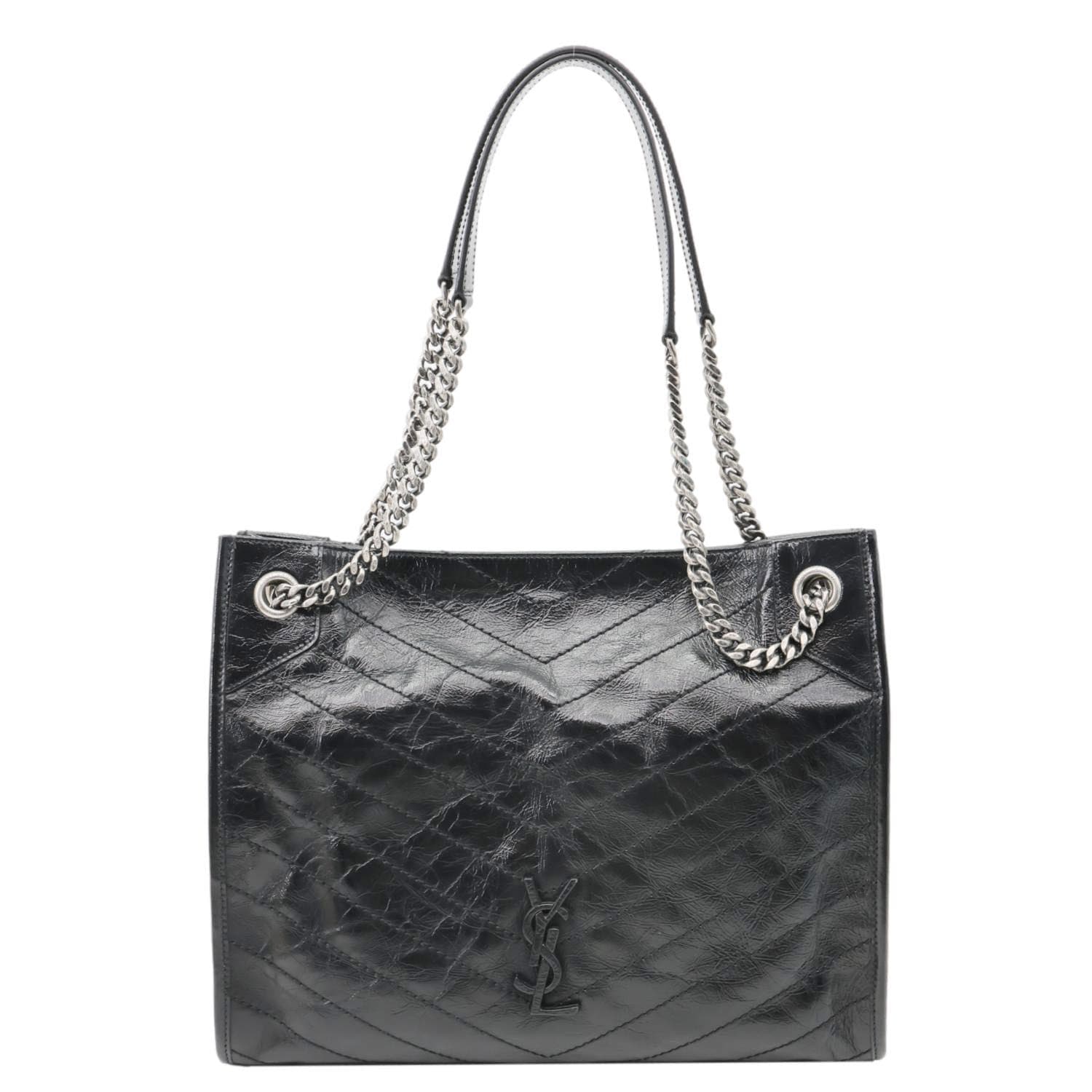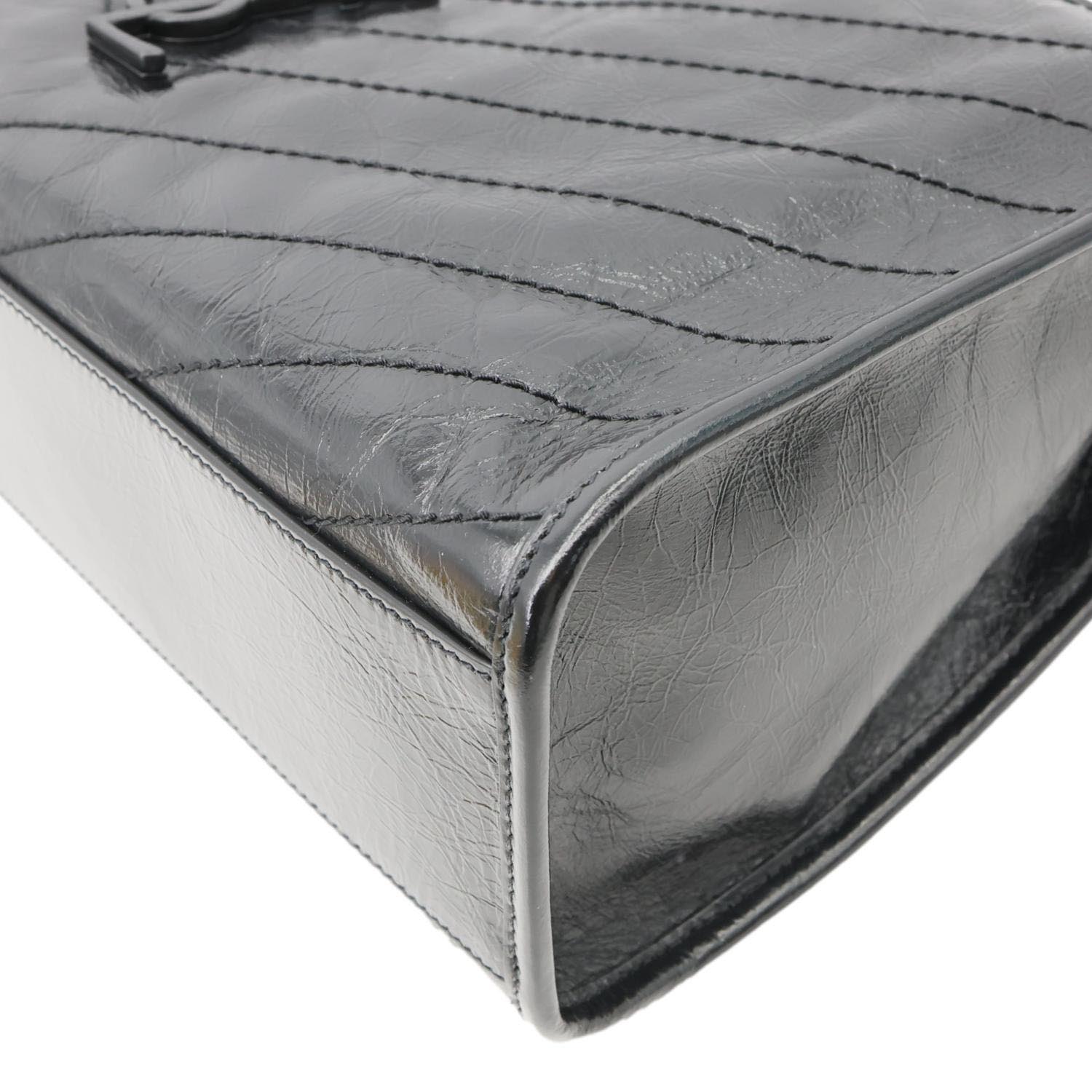 YVES SAINT LAURENT Niki Medium Crinkled Leather Shopping Tote Bag Black