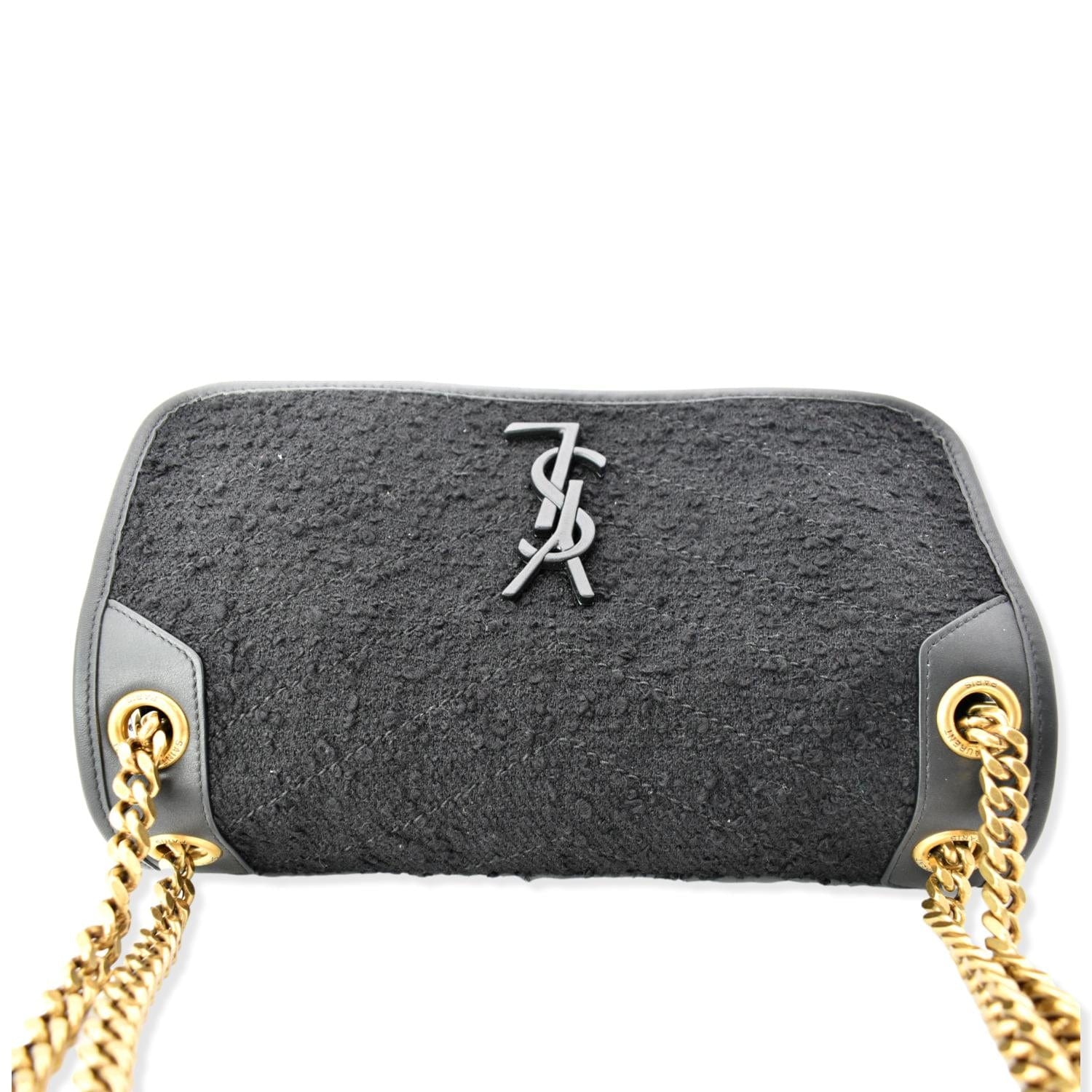 YVES SAINT LAURENT Niki Medium Tweed Shoulder Bag Black