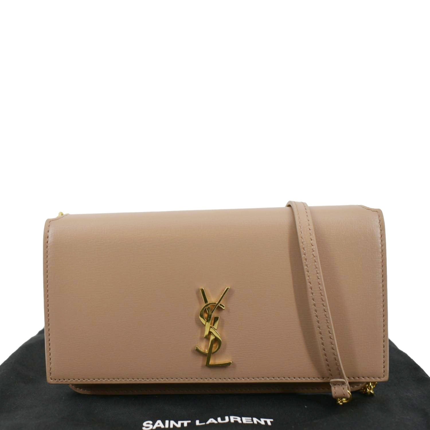YVES SAINT LAURENT Cassandre Phone Holder Leather Shoulder Bag Dark Beige