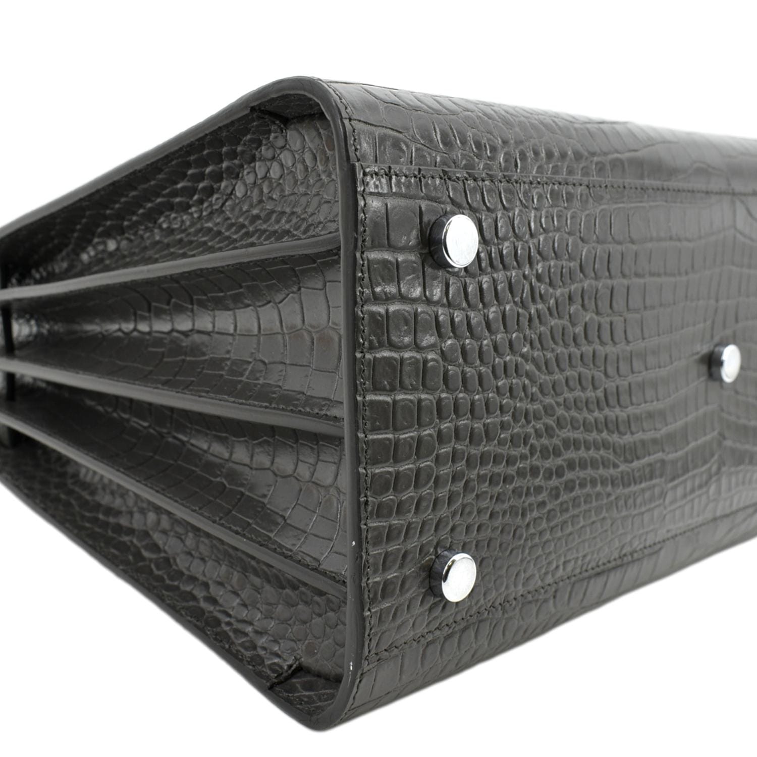 Sac de Jour Crocodile-Embossed Satchel Bag Grey