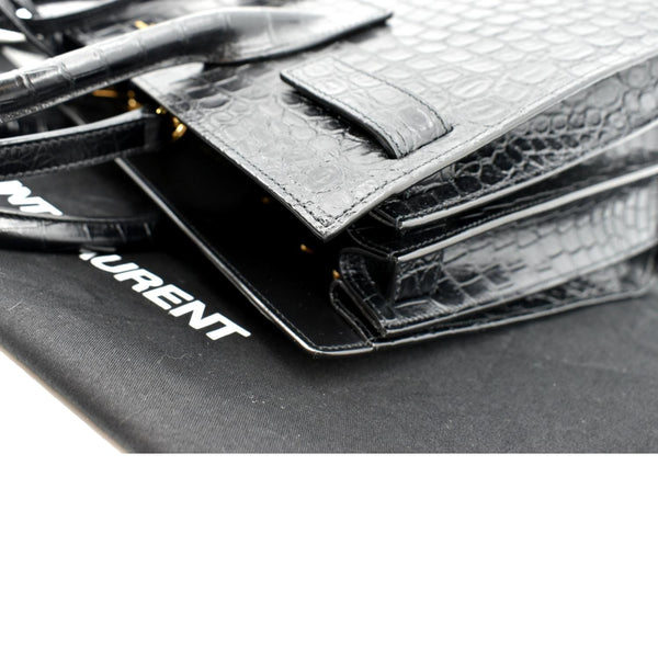 YVES SAINT LAURENT Sac de Jour Crocodile-Embossed Satchel Bag Black