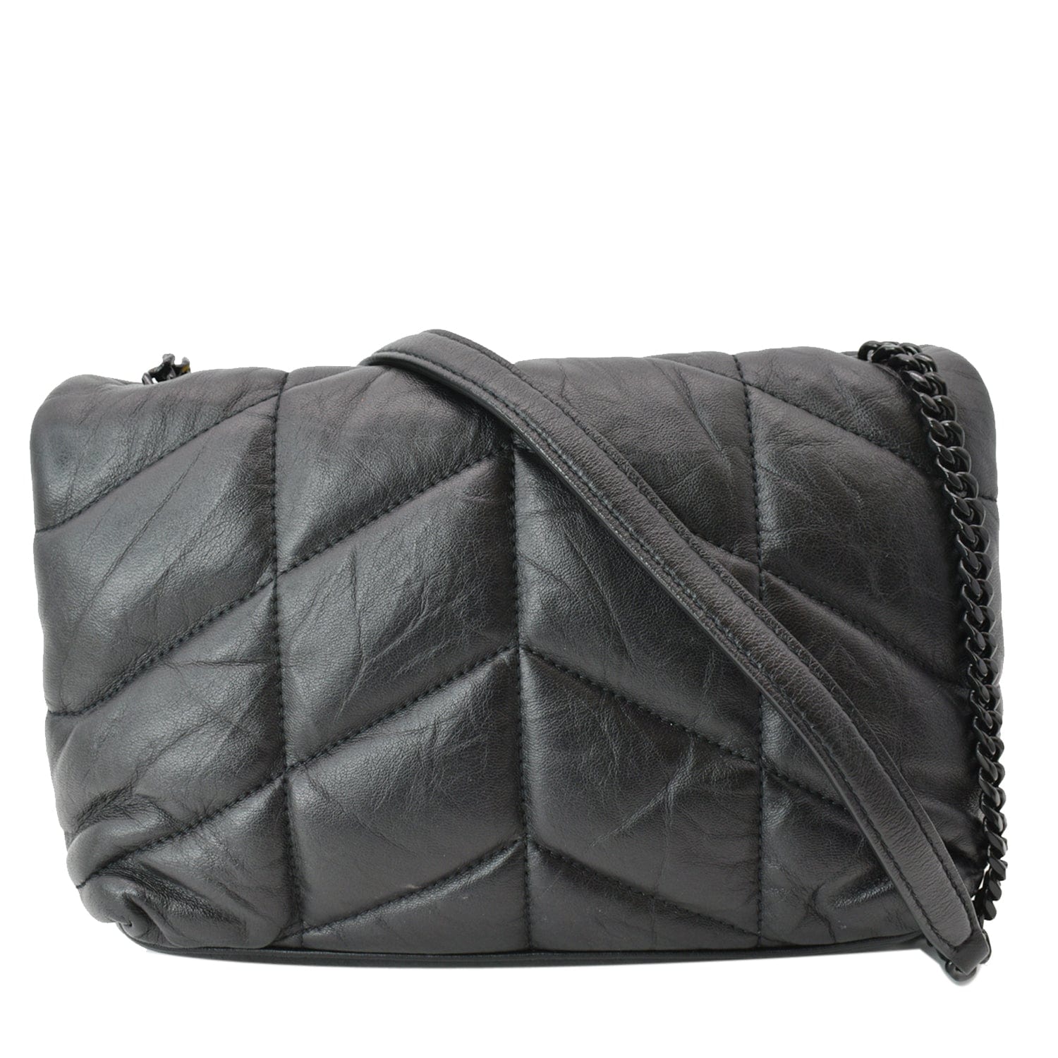 Small Loulou Puffer Quilted Lambskin Leather Crossbody Bag Black