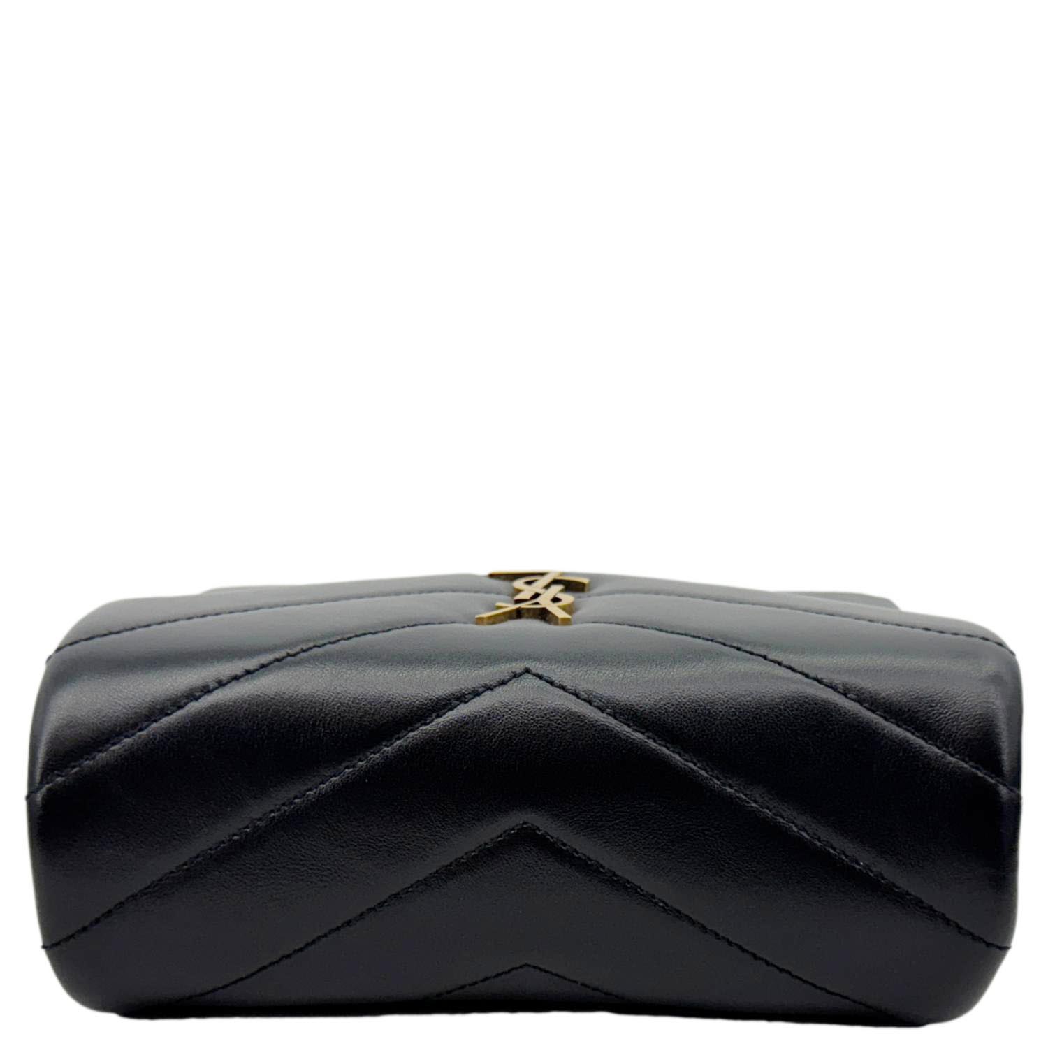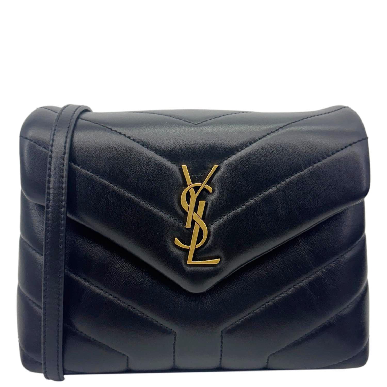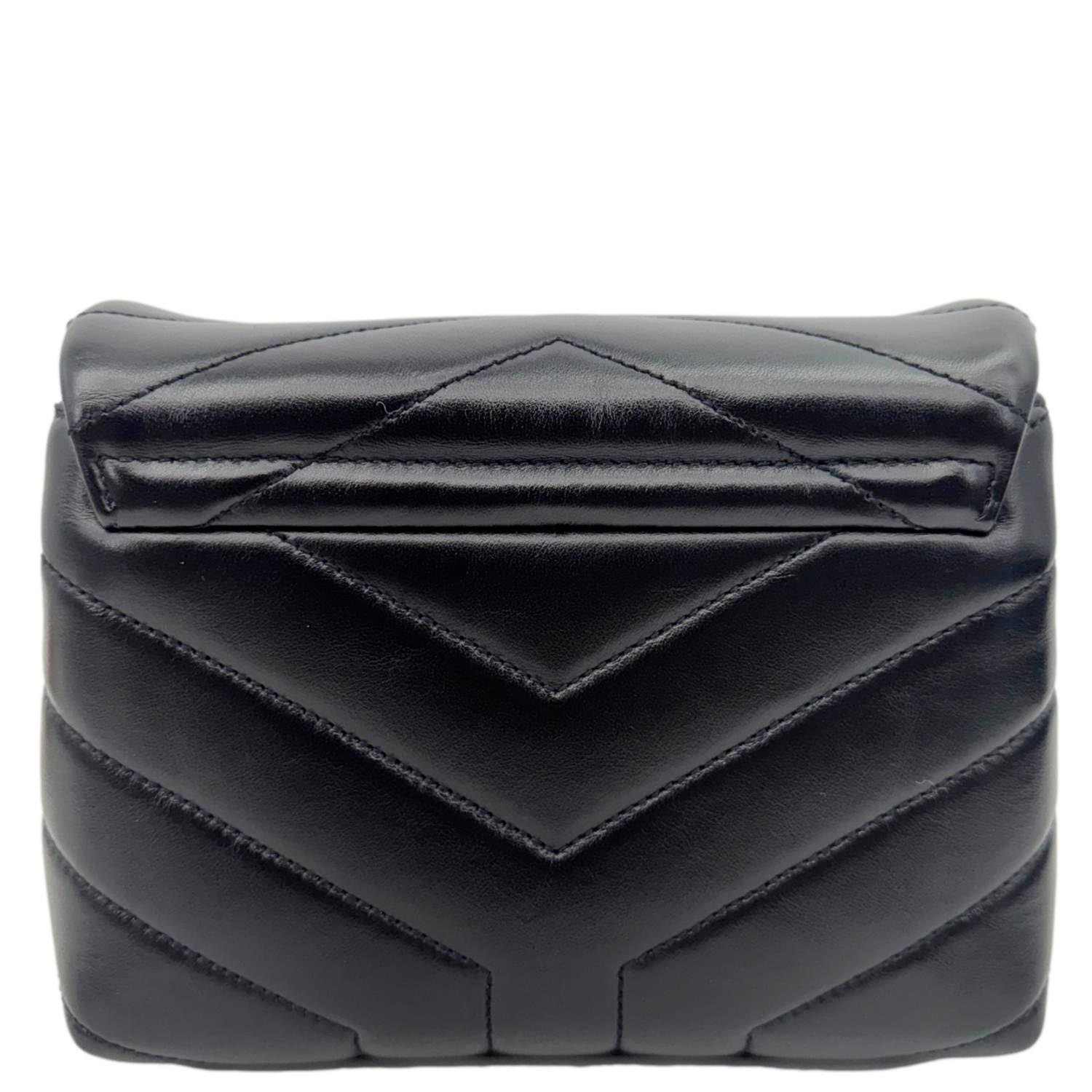 Compact and chic, the Yves Saint Laurent Loulou Toy Crossbody Bag in black calfskin leather features the iconic YSL logo and chevron quilting. A timeless piece perfect for hands-free elegance, day or night.