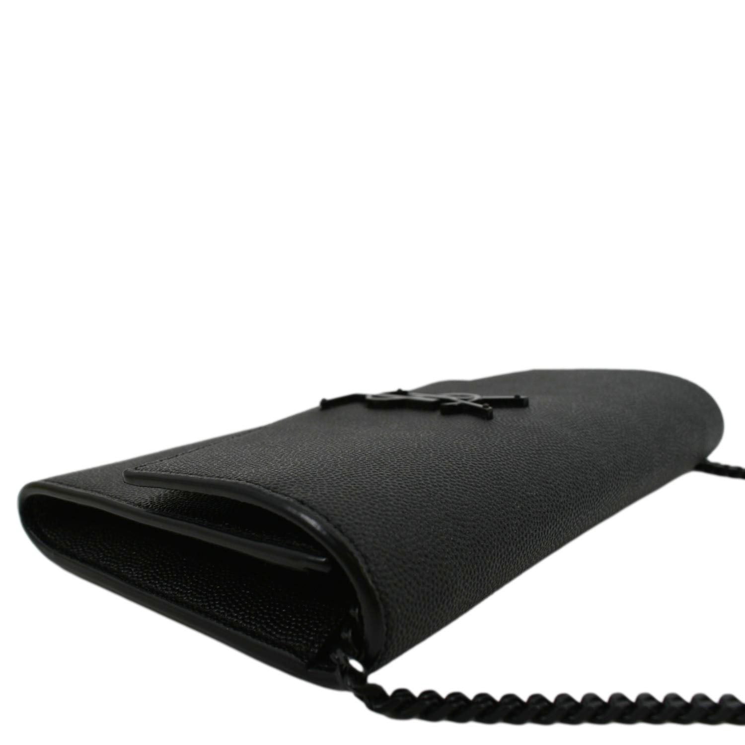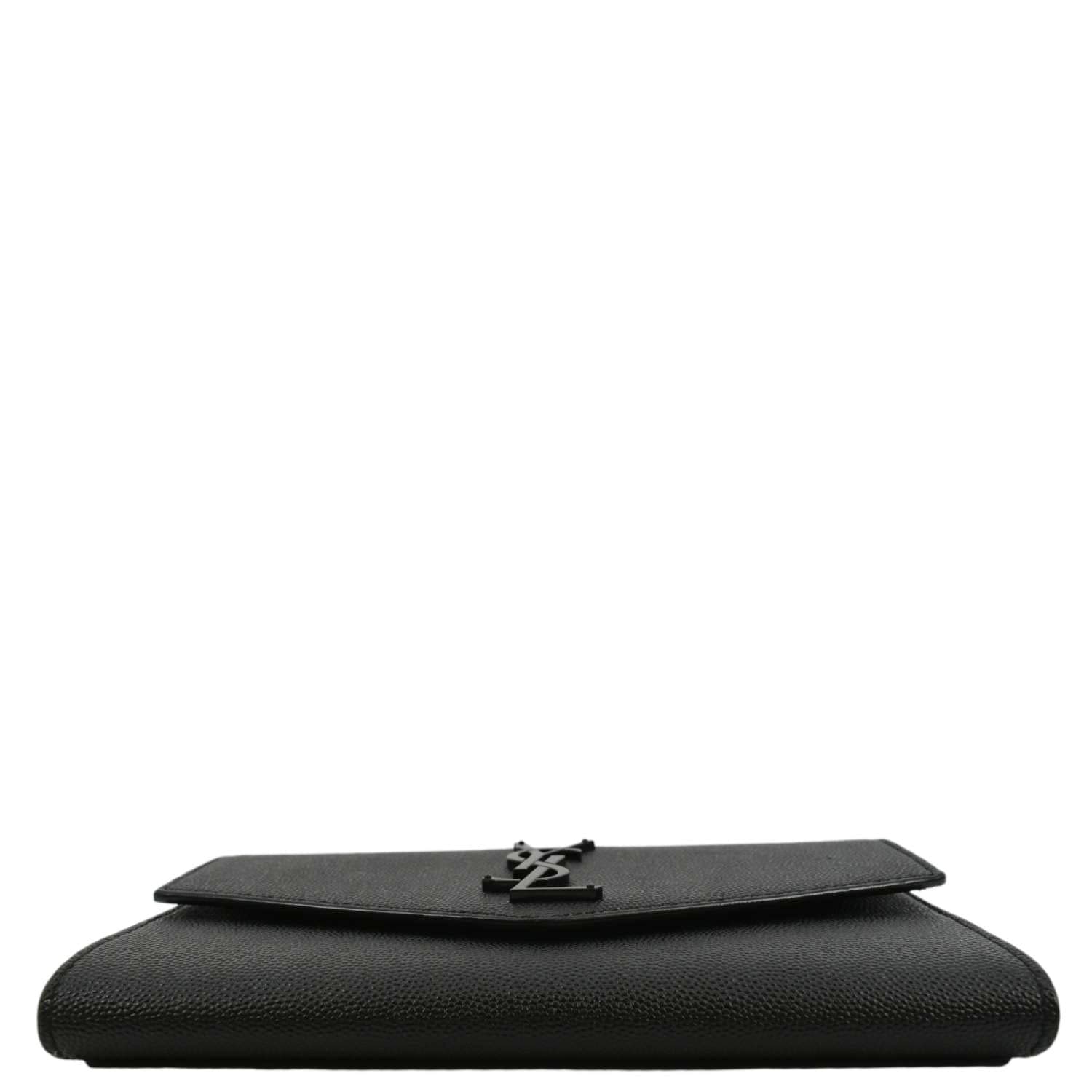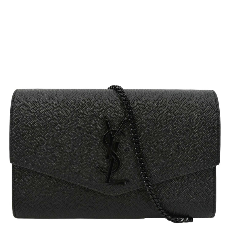 YVES SAINT LAURENT Uptown Gain De Poudre Embossed Leather Crossbody Chain Wallet Black