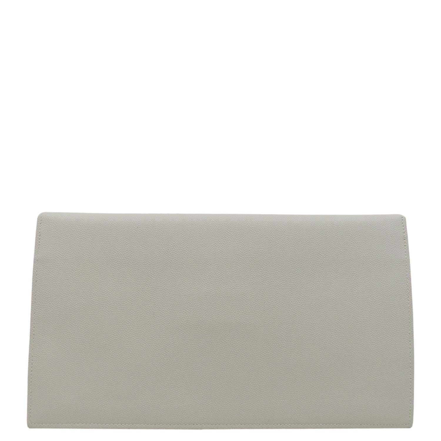 YVES SAINT LAURENT Uptown Envelope Grain De Poudre Leather Clutch Light Grey