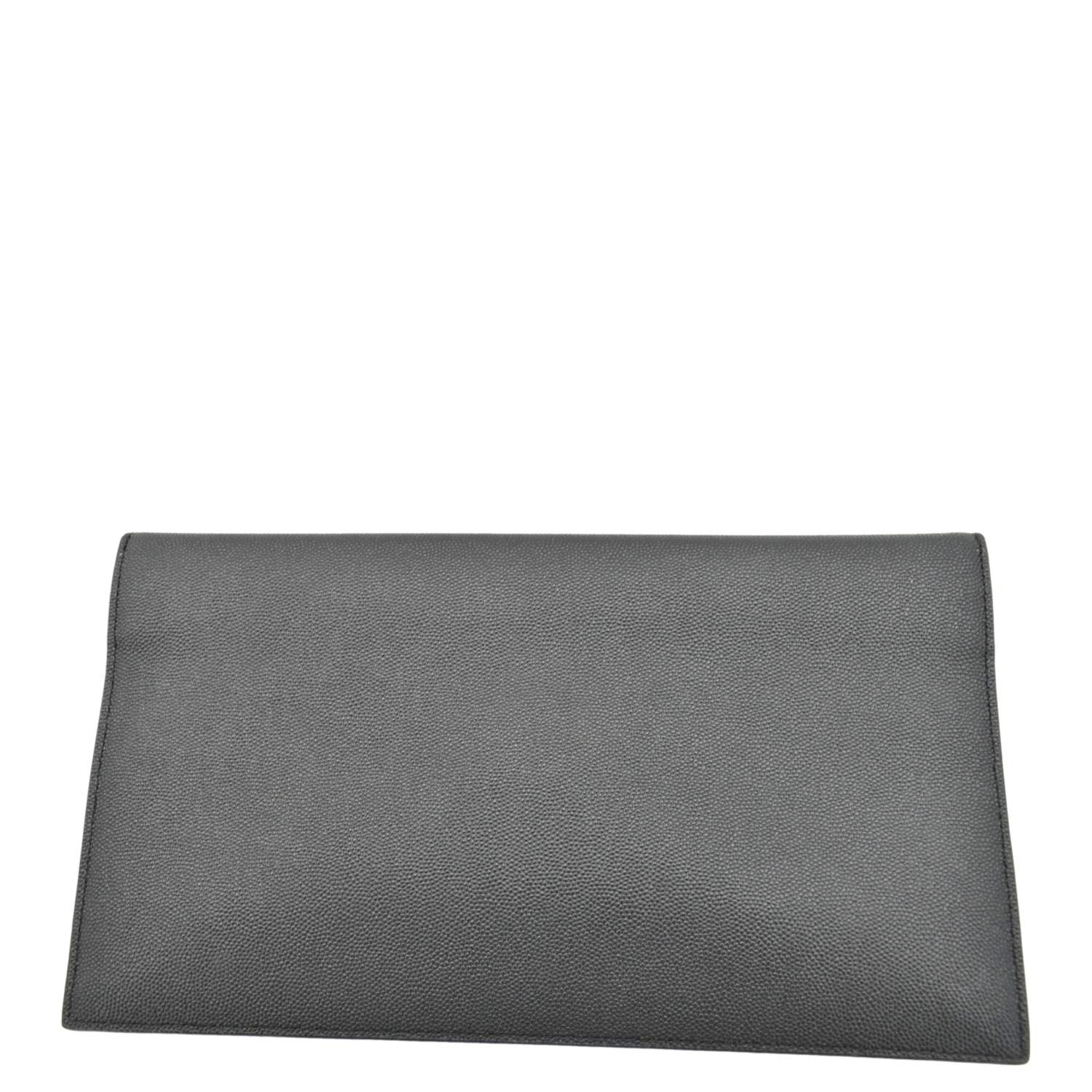 YVES SAINT LAURENT Uptown Envelope Grain De Poudre Leather Clutch Black
