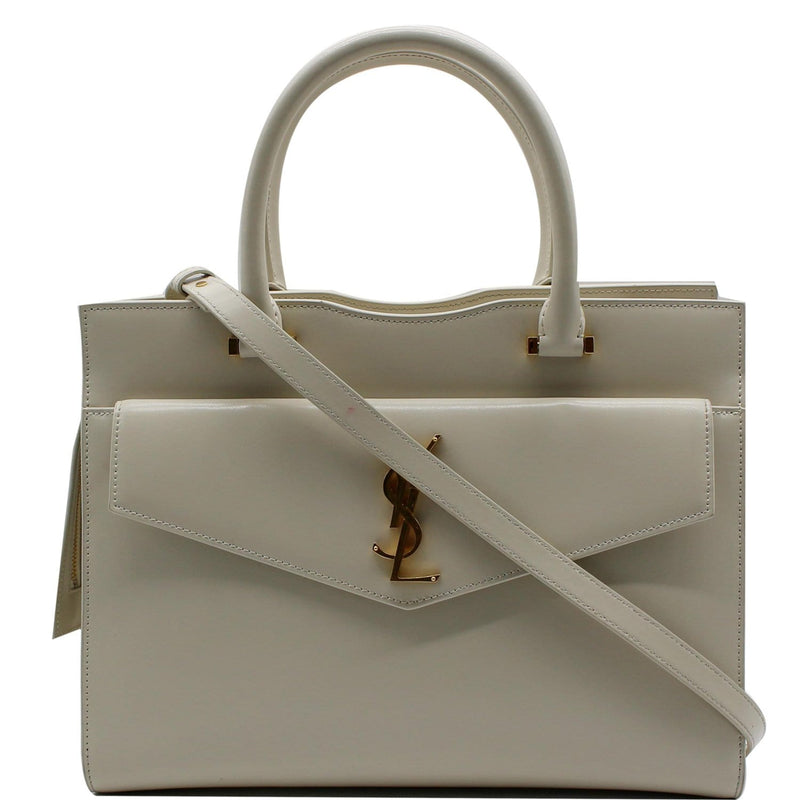 YVES SAINT LAURENT Uptown Medium Leather Tote Bag White