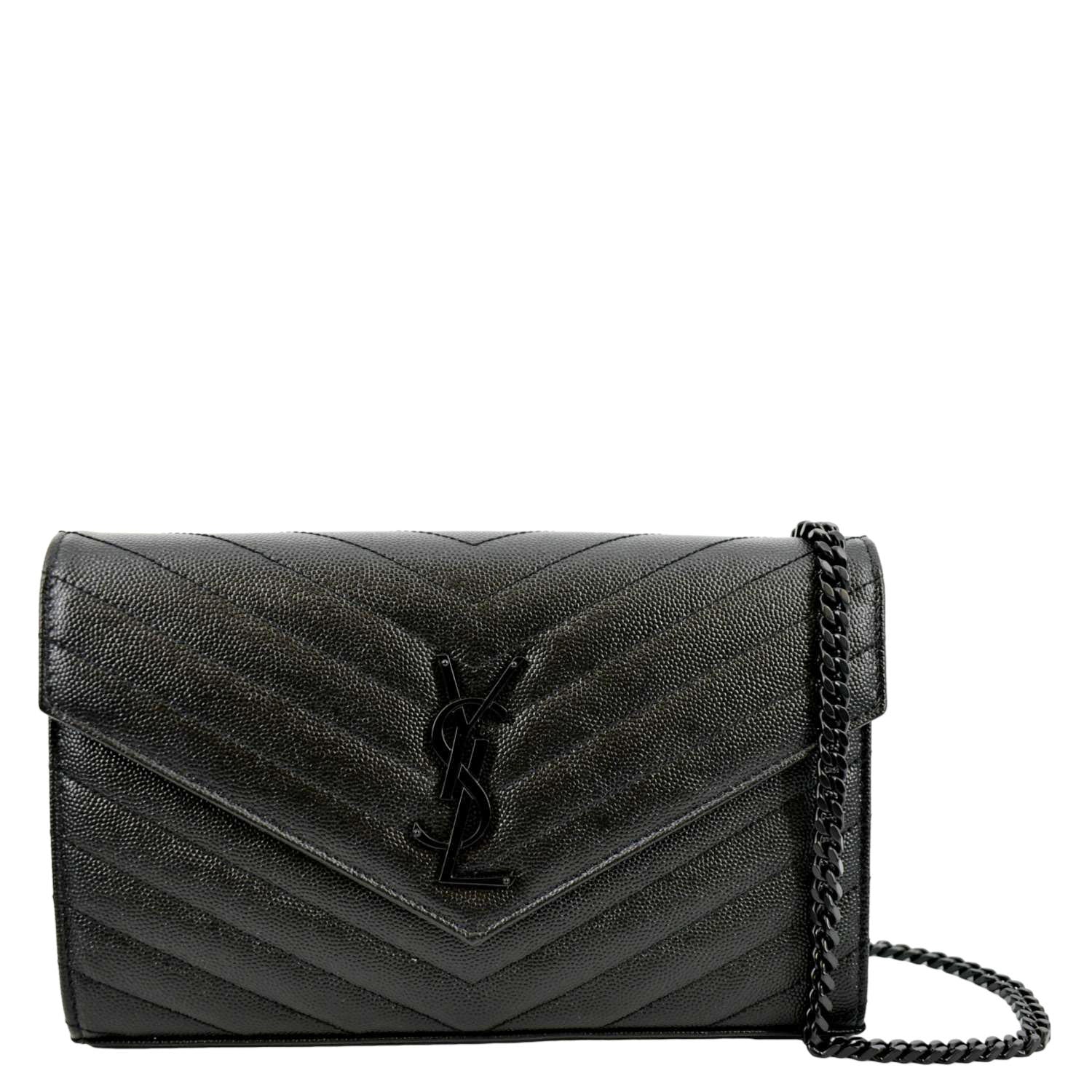 YVES SAINT LAURENT Cassandre Matelasse Chain Wallet Crossbody Bag Black