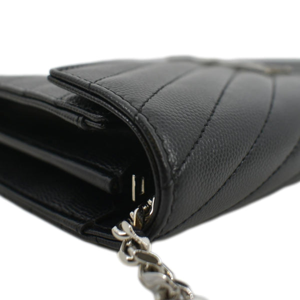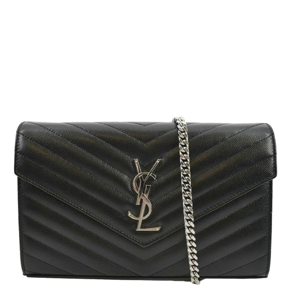 YVES SAINT LAURENT Cassandre Chain Wallet Leather Crossbody Bag Black